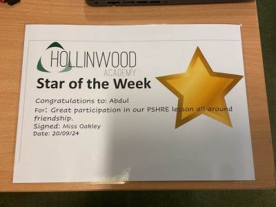 Miss Oakley’s STAR of the week is Abdul for great participation in our PSHRE lesson all around friendship.