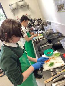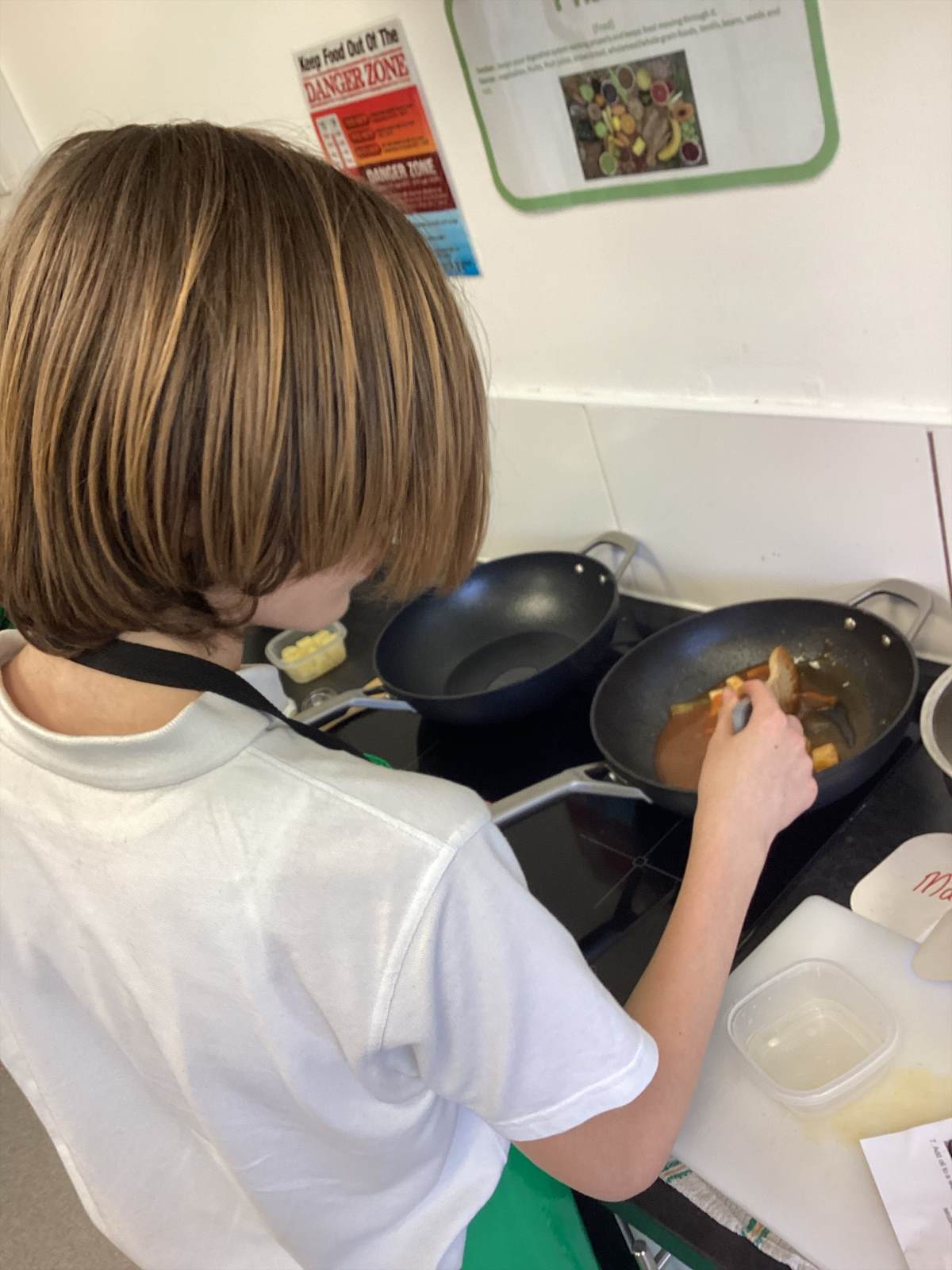 In food technology, we have been working on our cutting skills. This week we made sweet and sour nuggets and we made our own sauce using different ingredients and worked on our cutting skills when cutting the vegetables. It was very tasty.