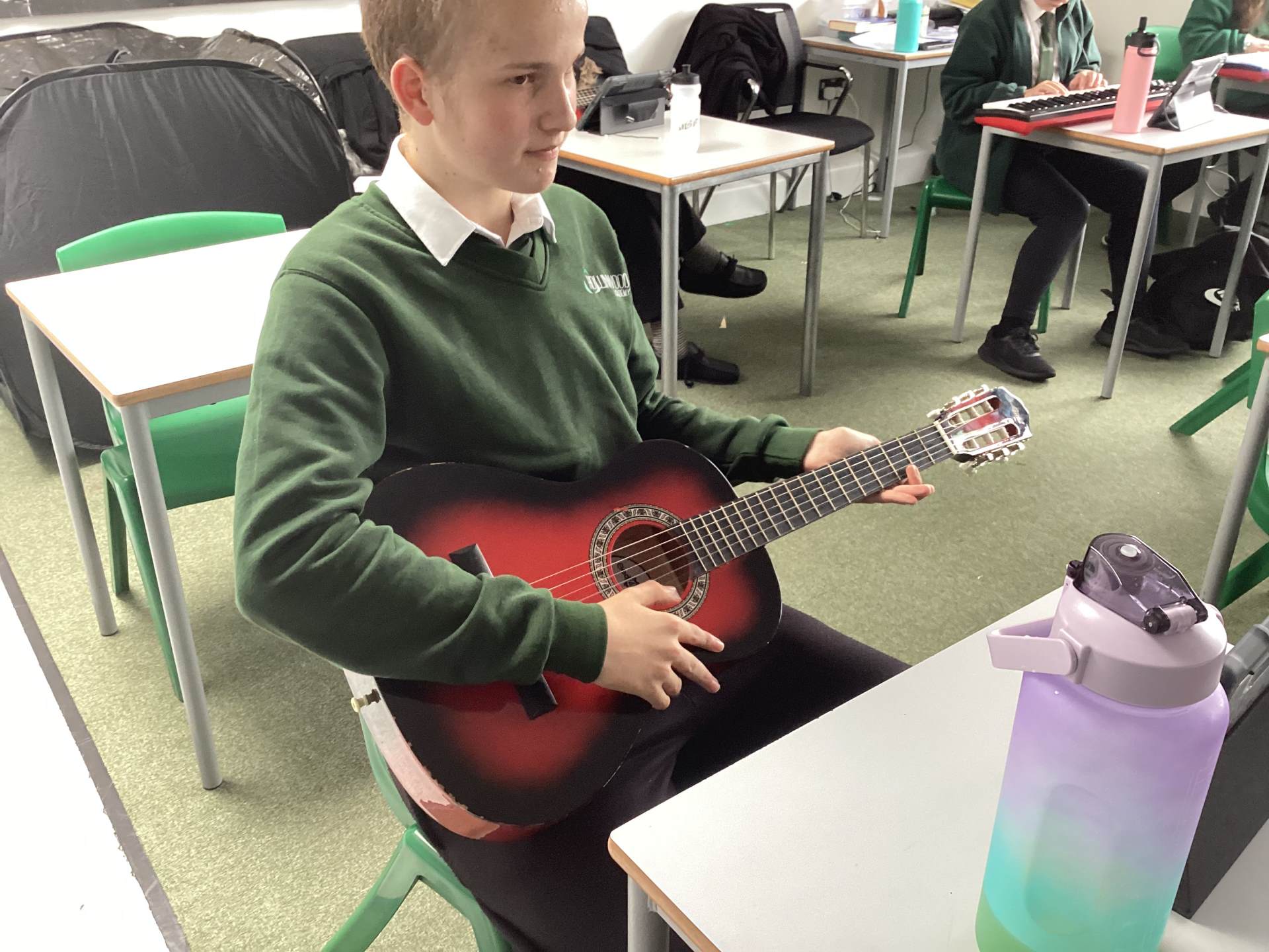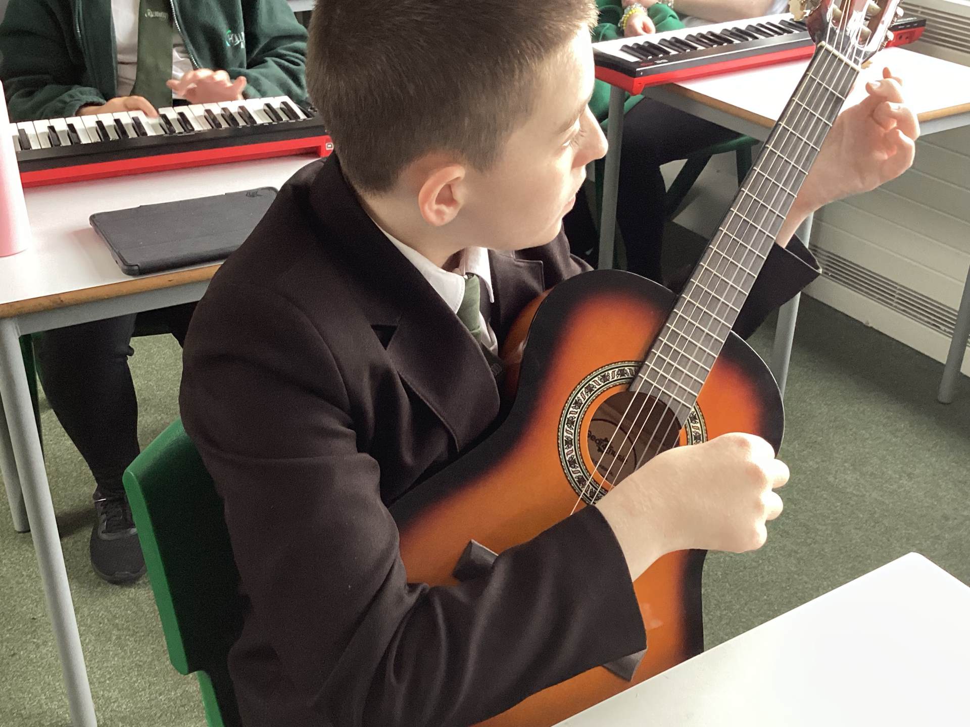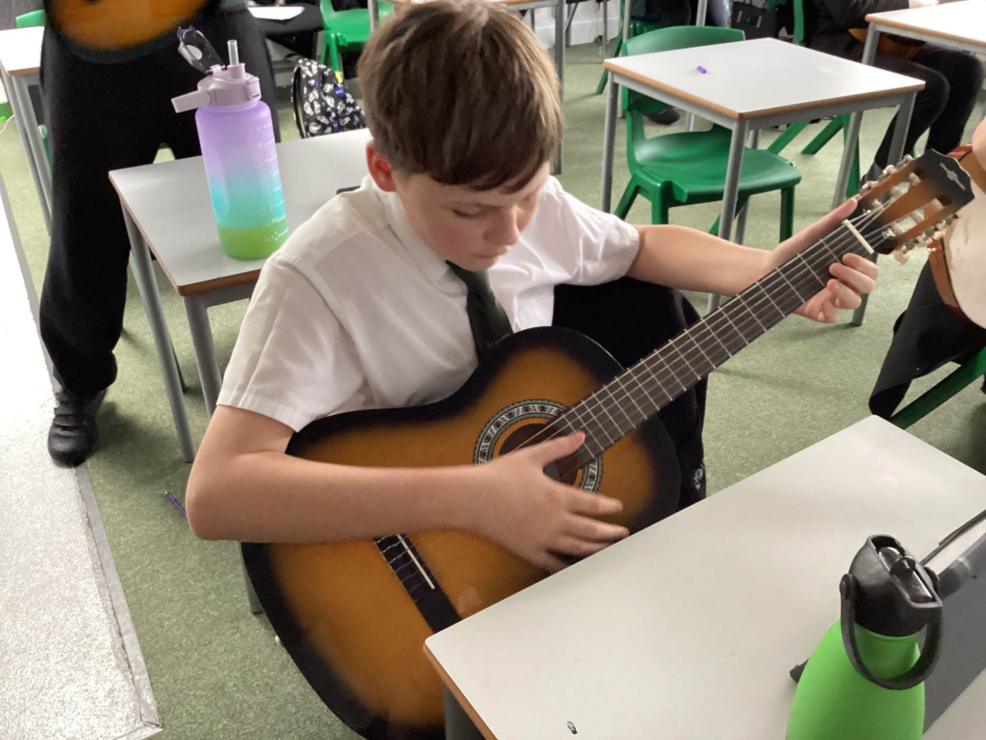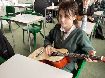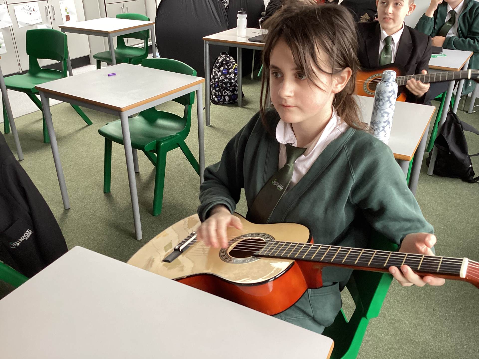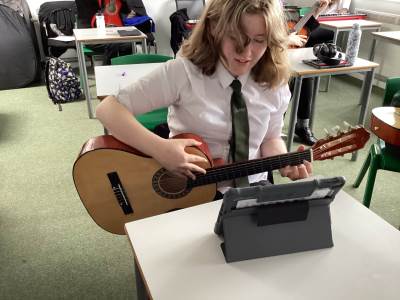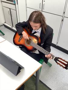 In music we have been learning about riffs, we have learnt to play riffs on the keyboard and this week have practiced riffs using guitar.