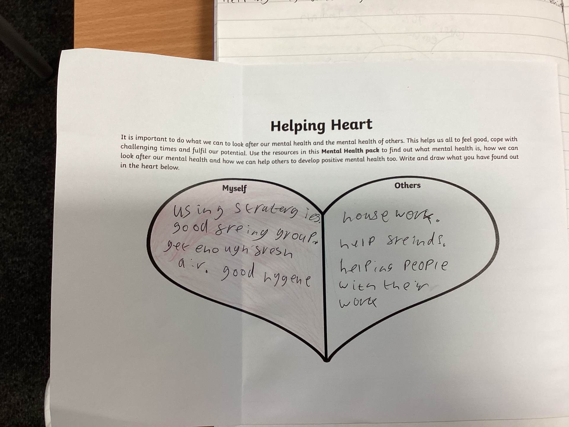 RSE The class thought about how they help others and how they can help themselves to help their Wellbeing. They discovered Kindness is key.