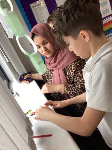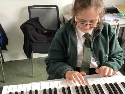 During Music, this week the class could either play a keyboard or guitar to practice musical cords. They learnt the song Happier. Sofia goes to choir on a Monday lunchtime as an extra curricular club and introduced Lucie and a few other girls from year 8. They had an enjoyable time singing songs by several artists including Lana Del Ray.