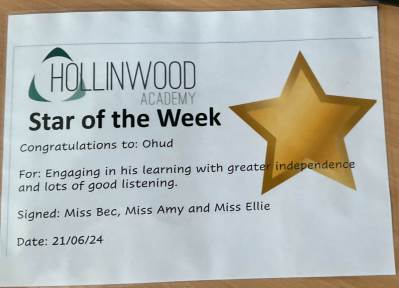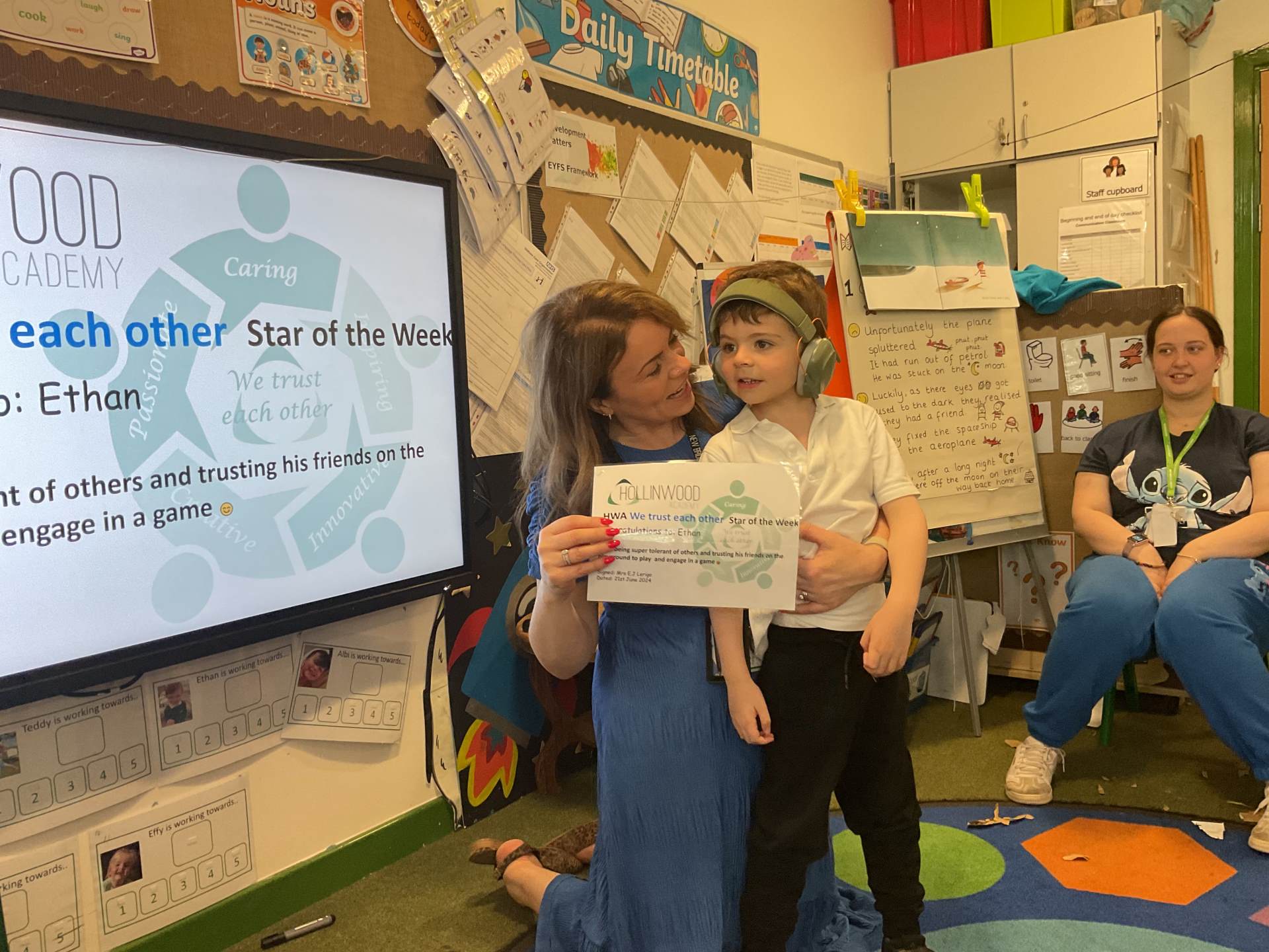 Mrs Quinn’s STAR of the week is William for tidying up in class (with only a song and modelling prompt) and my trust star is Kai for following accepting a different routine in his music lessons and joining in last week.