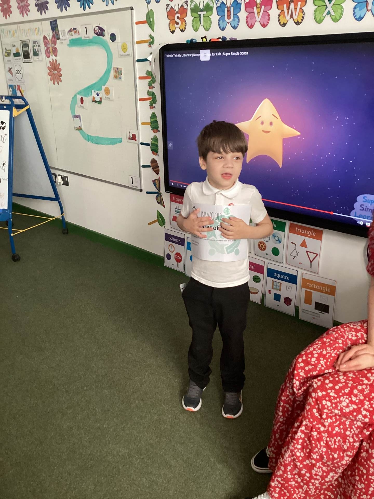 Miss Tootill’s STAR of the week is Connor for retelling his new English story.