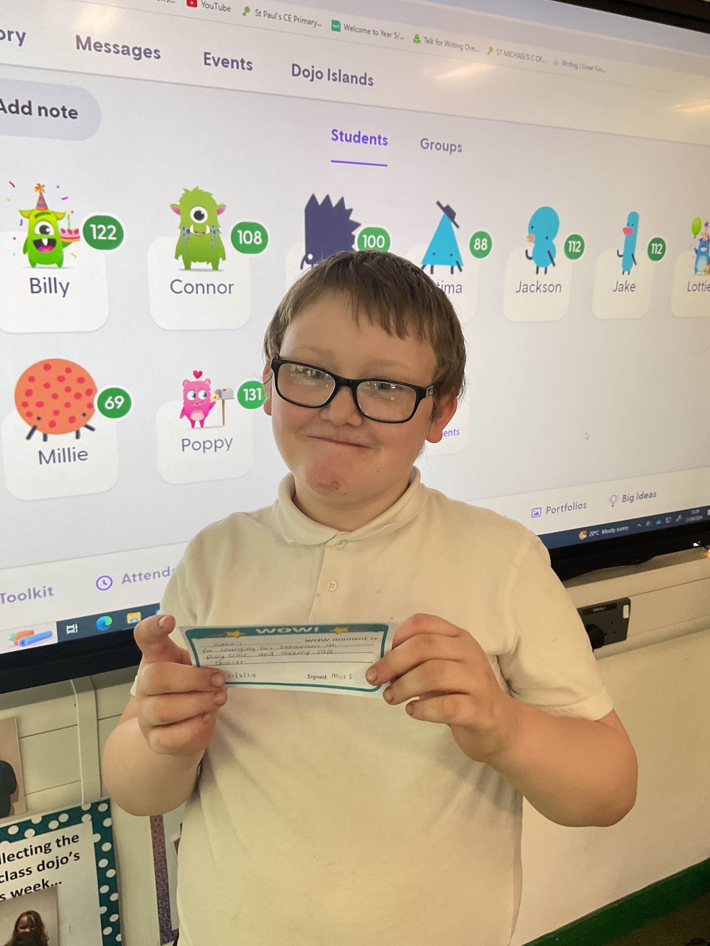 Miss Tootill’s Wow moment moments go to Zack. Well done!
