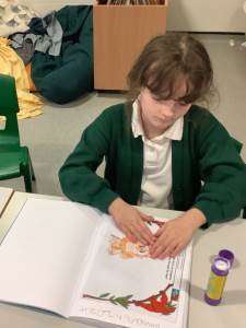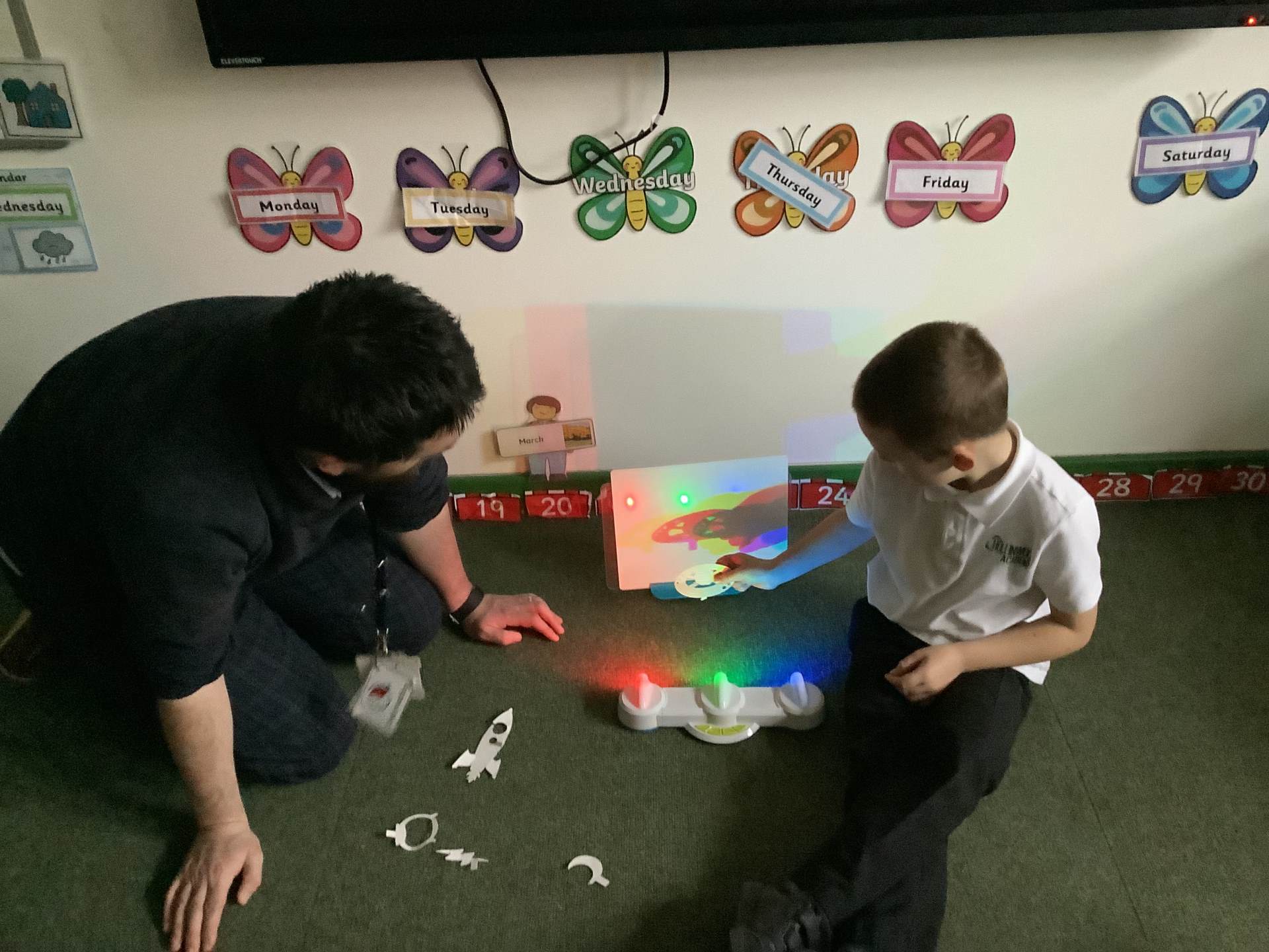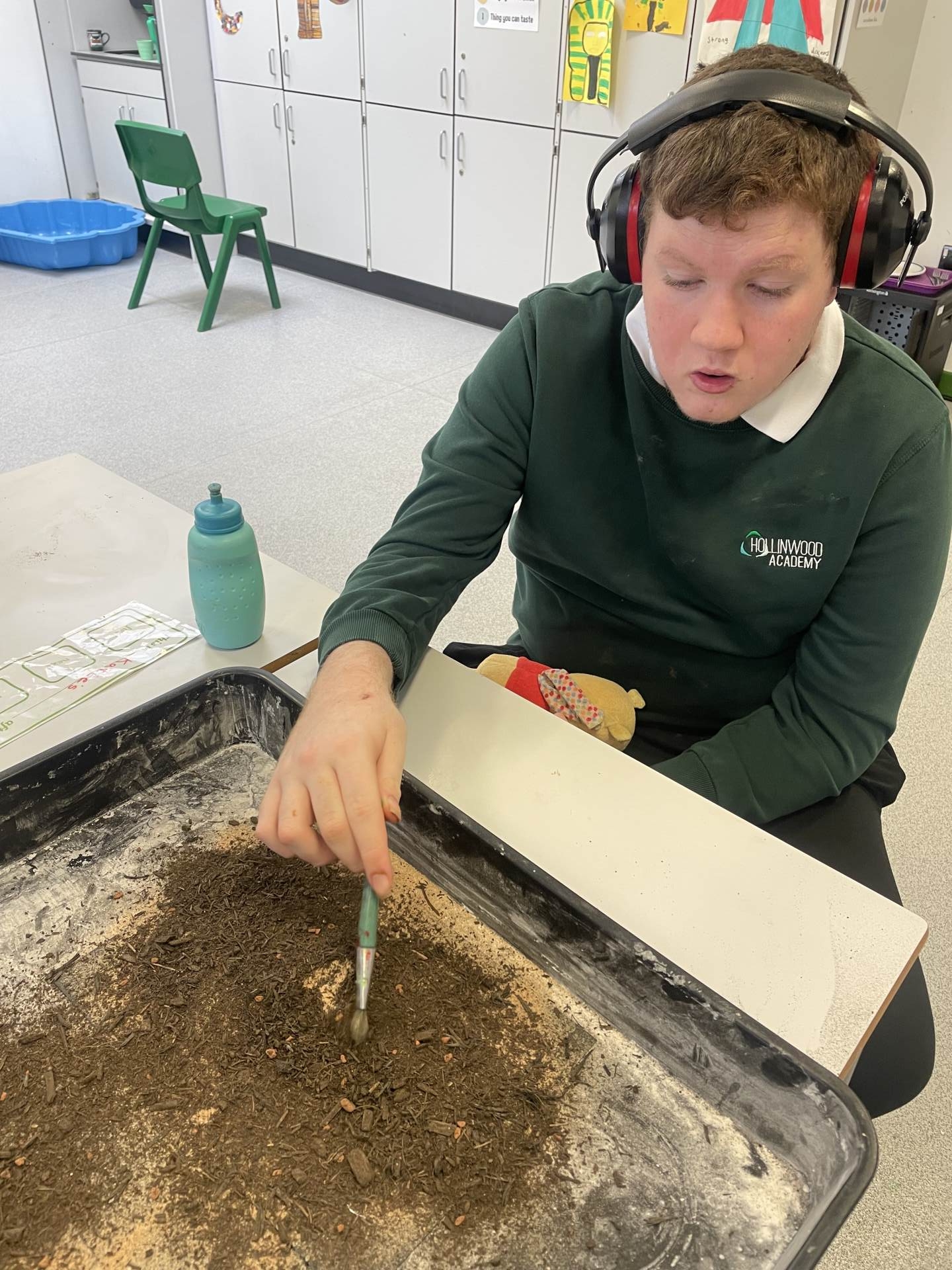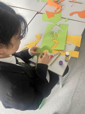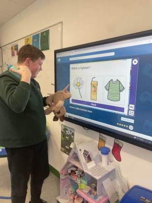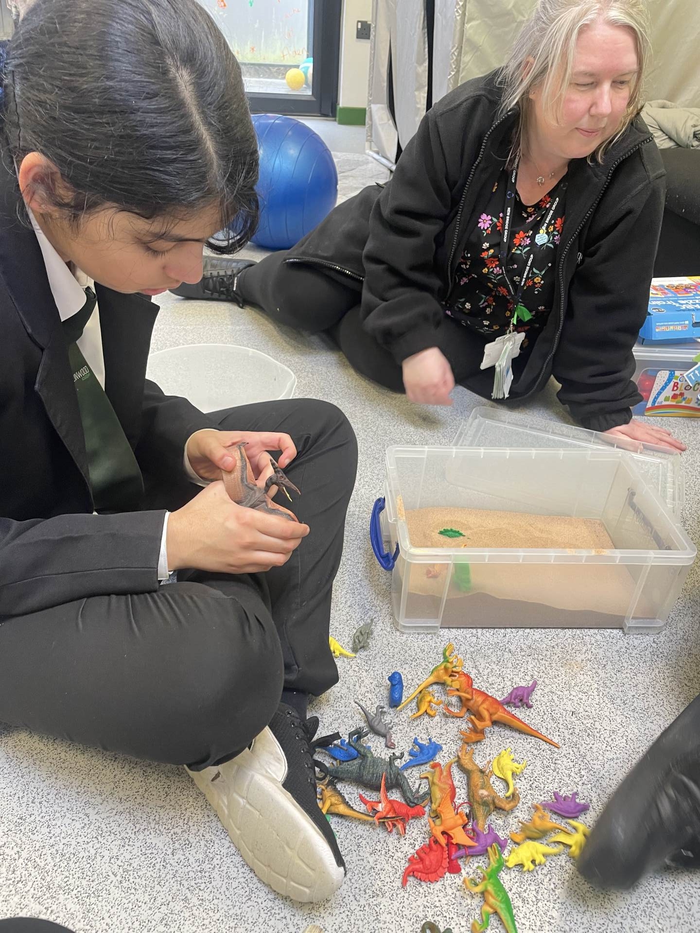 Whilst our focus has been our assessments and preparation for transitions, this half term we have loved exploring our ‘Dinosaur’ topic! Our tough tray was transformed into Jurassic Park out of artwork created by the students. We’ve looked at all types of dinosaurs, what they like to eat and their size; a class favourites are the Brachiosaurus and Triceratops. The students loved digging for fossils, and we even spotted some dinosaur footprints in our classroom!