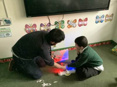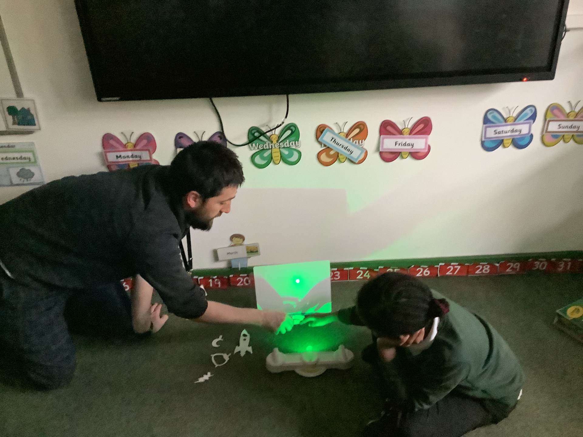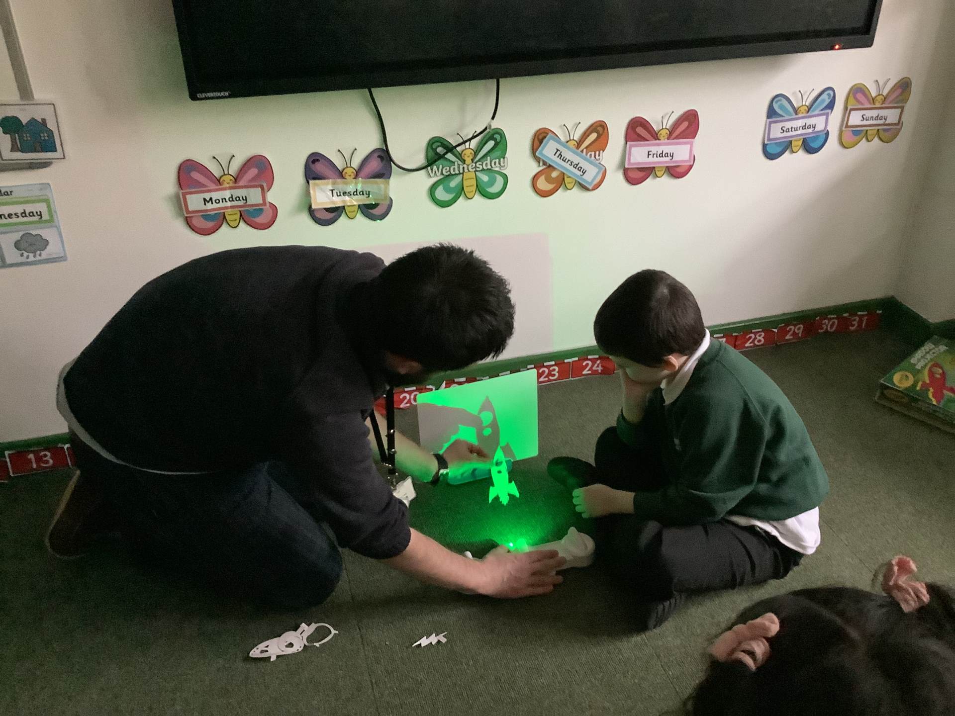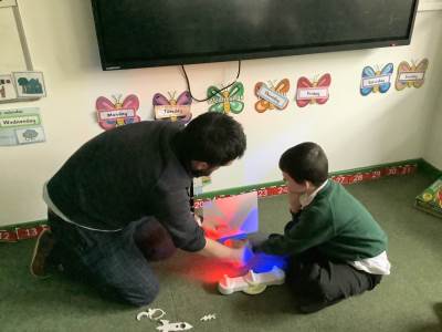 "This half term our science focus is Light, diving into the topic of light sources. This fascinating topic has involved exploring how light is produced, understanding different sources of light, and uncovering the properties of light. We have engaged in interactive experiments and discussions to deepen our understanding of key concepts, such as reflection and shadows. For Science Day we took part in several sensory experiments, which the children loved."