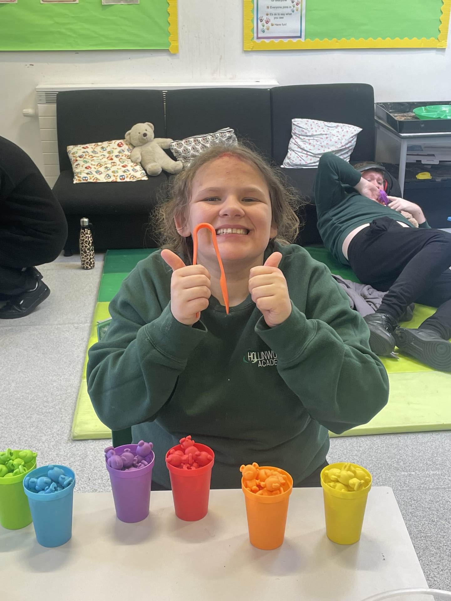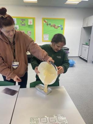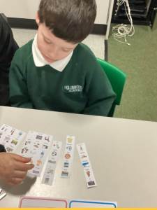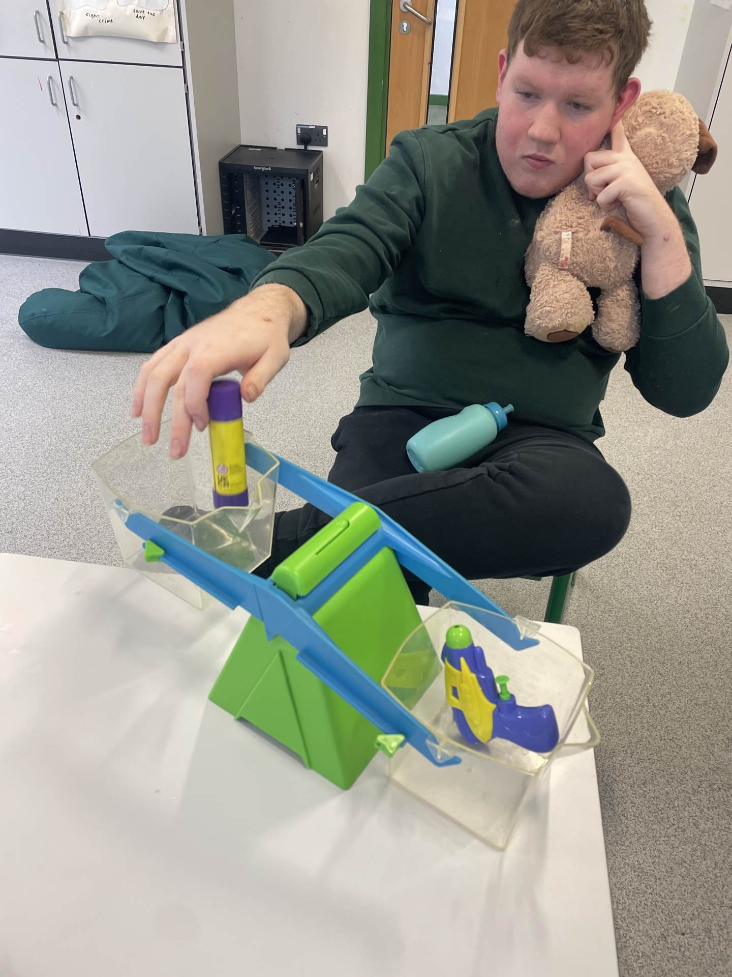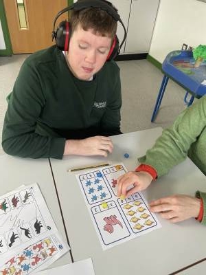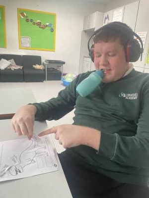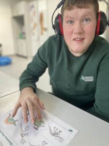 Maths has been all about weights and measurements, comparing different items within the class to find the heaviest; the students have enjoyed working together. In English students have been reading to individual abilities and working on spellings and grammar within sentence structures. We spent some time exploring the new library area within school and found some new books to bring back to class. The students have enjoyed stick puppets of ‘Hideasauras’ and acting out the ‘search’ they go on. As the weather improves we have been outside for Science looking at different habitats and searching for birds. In Food Technology with Ms Duffy students have been preparing starters, mains and deserts, using different equipment safety and cleaning up as part of their BTEC assessment. Music is always a favourite in our class and the students love using the boomwhackers, following tutorial videos. Each day we take part in a variety of sensory activities and have been focusing on group work; turn taking, problem solving, addressing peers and independence. Outdoor education has been focused on safety when access the community and places to eat and drink. The students have been great ordering their own food and drink choices and behaving appropriately.
