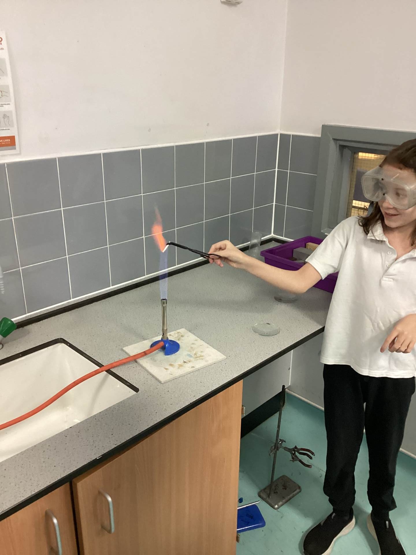 "This half terms topic for the year 7’s has been about acids and alkalis and the chemical reaction of metals and non-metals. They have enjoyed this topic as it has involved lots of practical work testing the pH of different substances and seeing what happens when you mix an acid and an alkali together. This week they have been learning about how metals and non-metals react with oxygen, recording their observations and learning how to write the reactions as a chemical equation.
