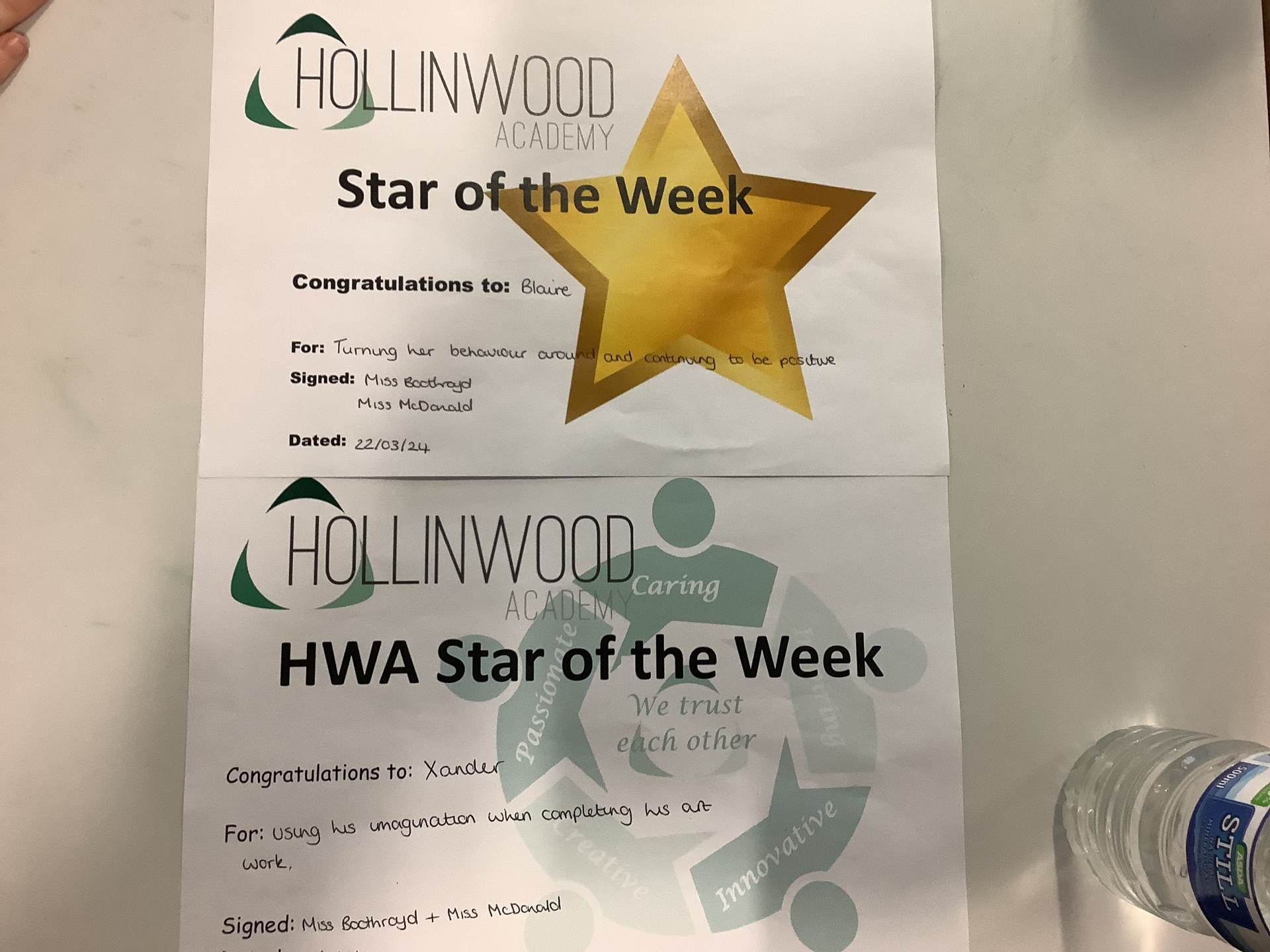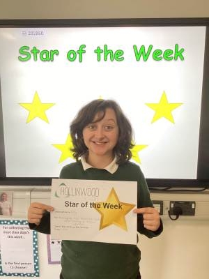 Miss Boothroyd and Miss McDonald’s STAR of the week is Blaire, for turning her behaviour around and continuing to be positive.