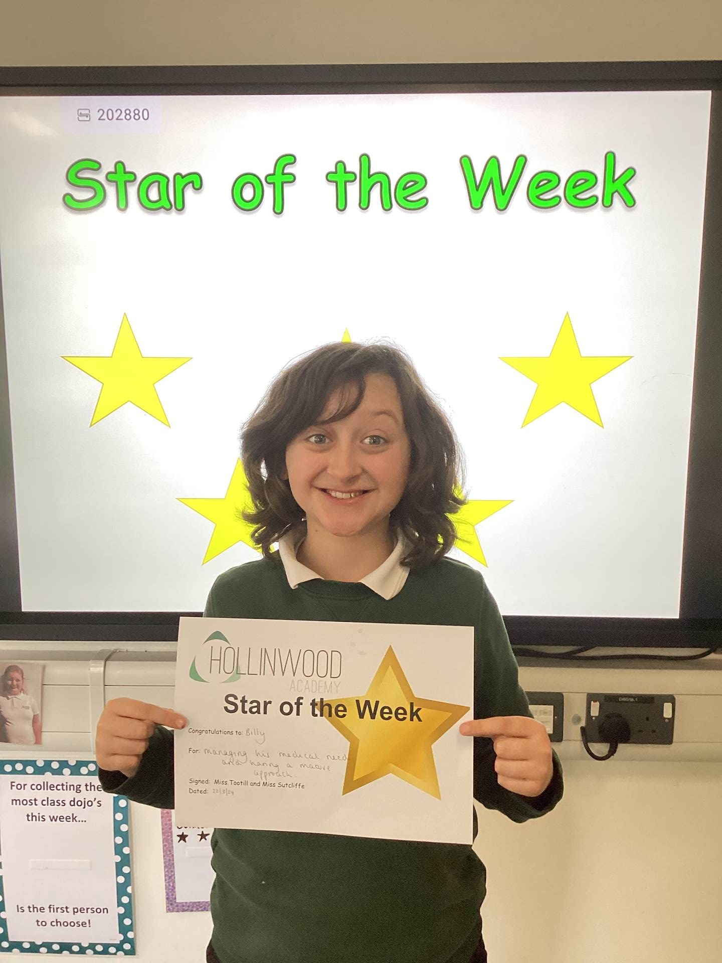 Miss Tootill’s STAR of the week is Billy for recognising his medical needs and having a mature approach when dealing with it.