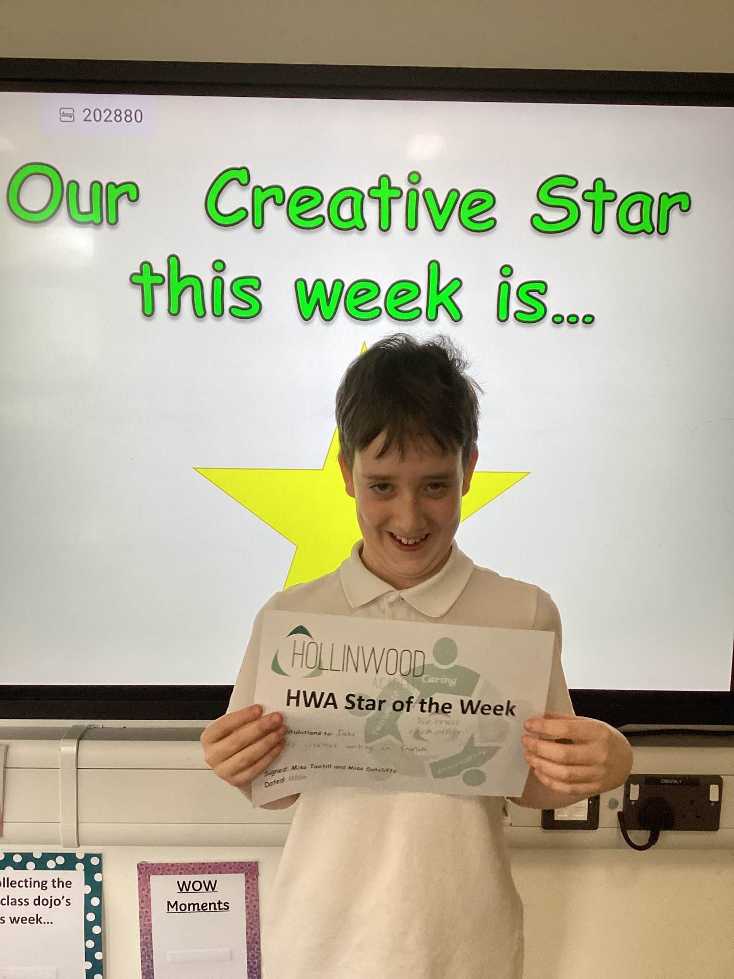 Miss Tootill’s HWA Creative STAR is Jake for his creative writing in English.