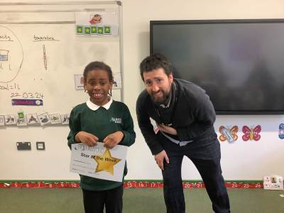 Miss Matthew’s STAR of the week is Ebon for showing an improved effort in all his lessons this week