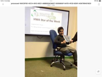 Miss Bramley’s HWA Creative STAR is Abdul for his amazing writing skills and showing an improvement week on week.