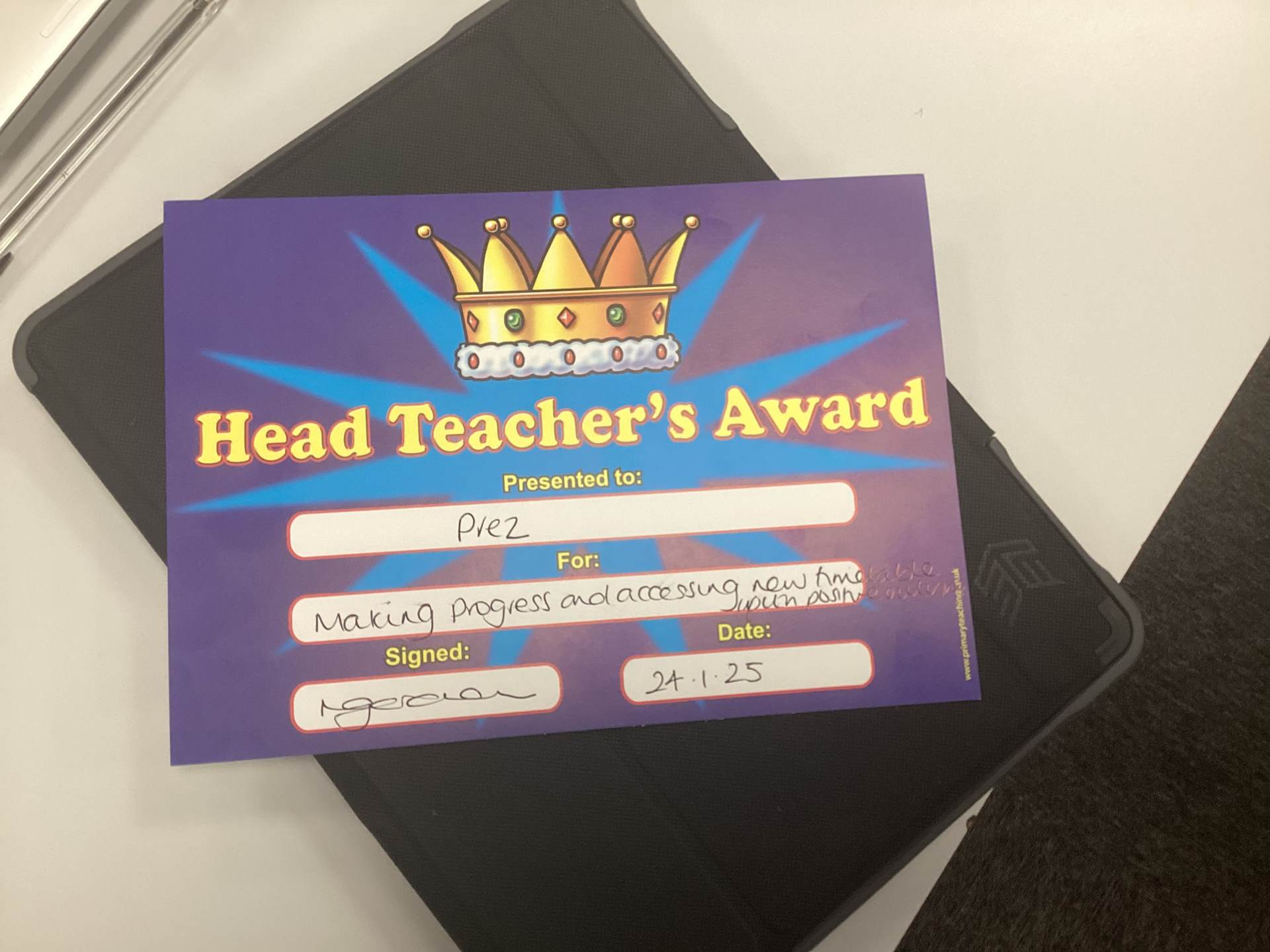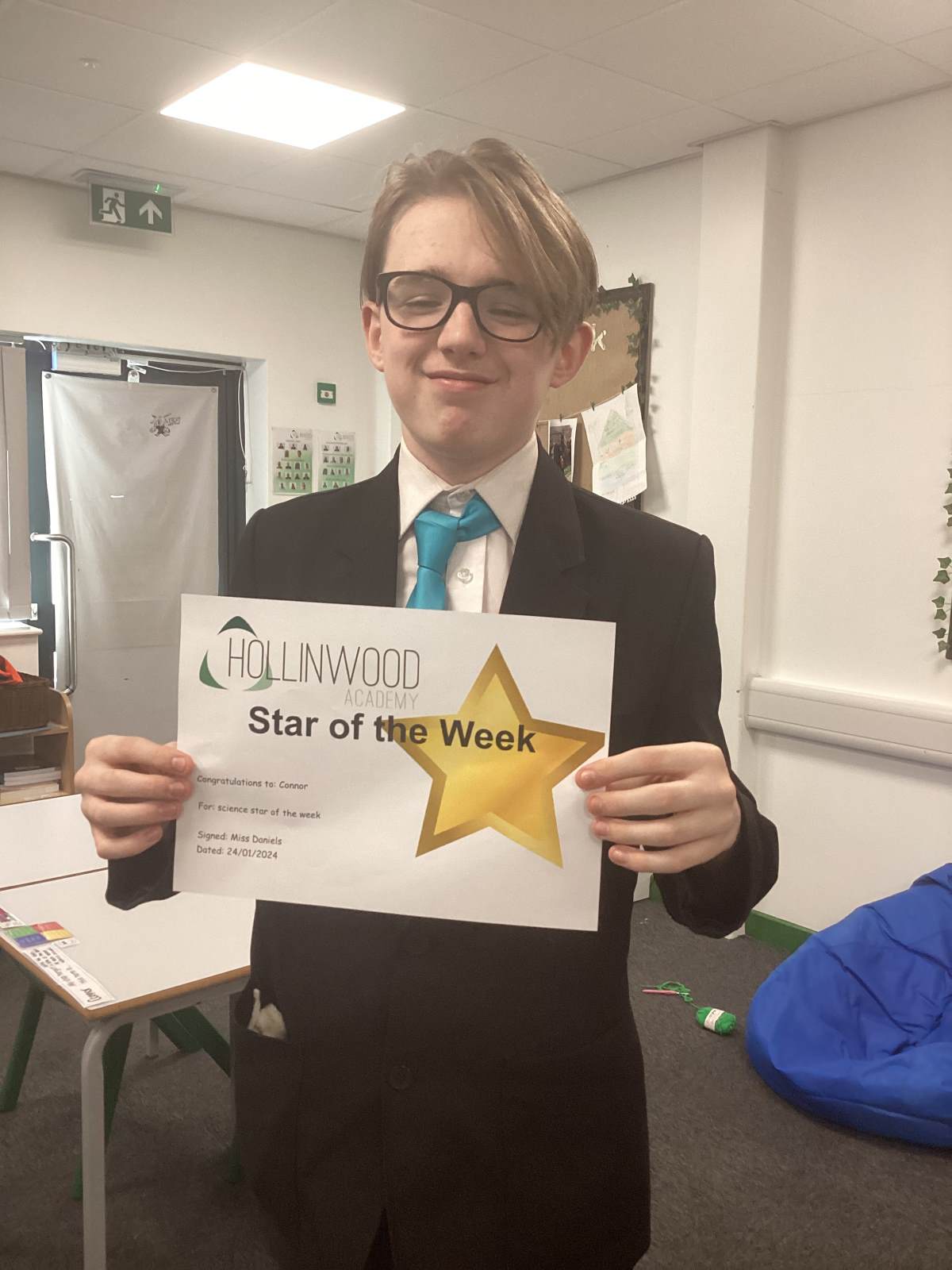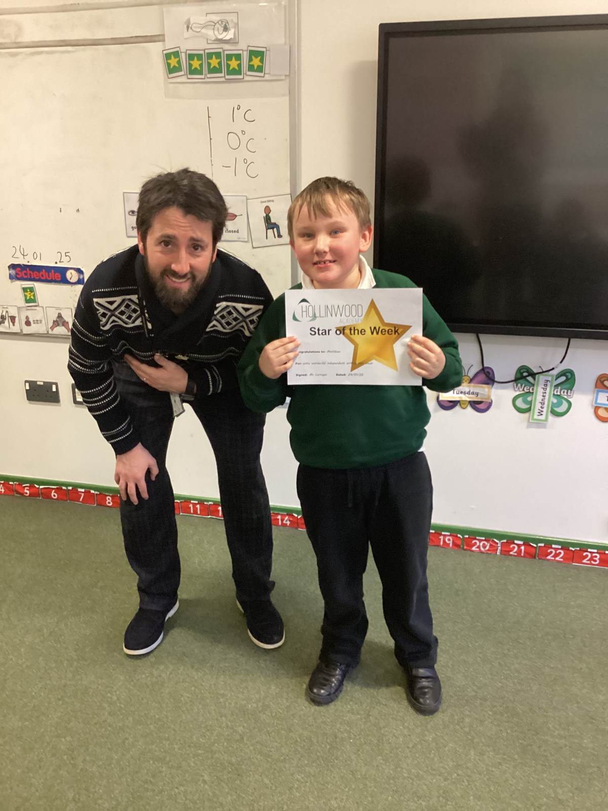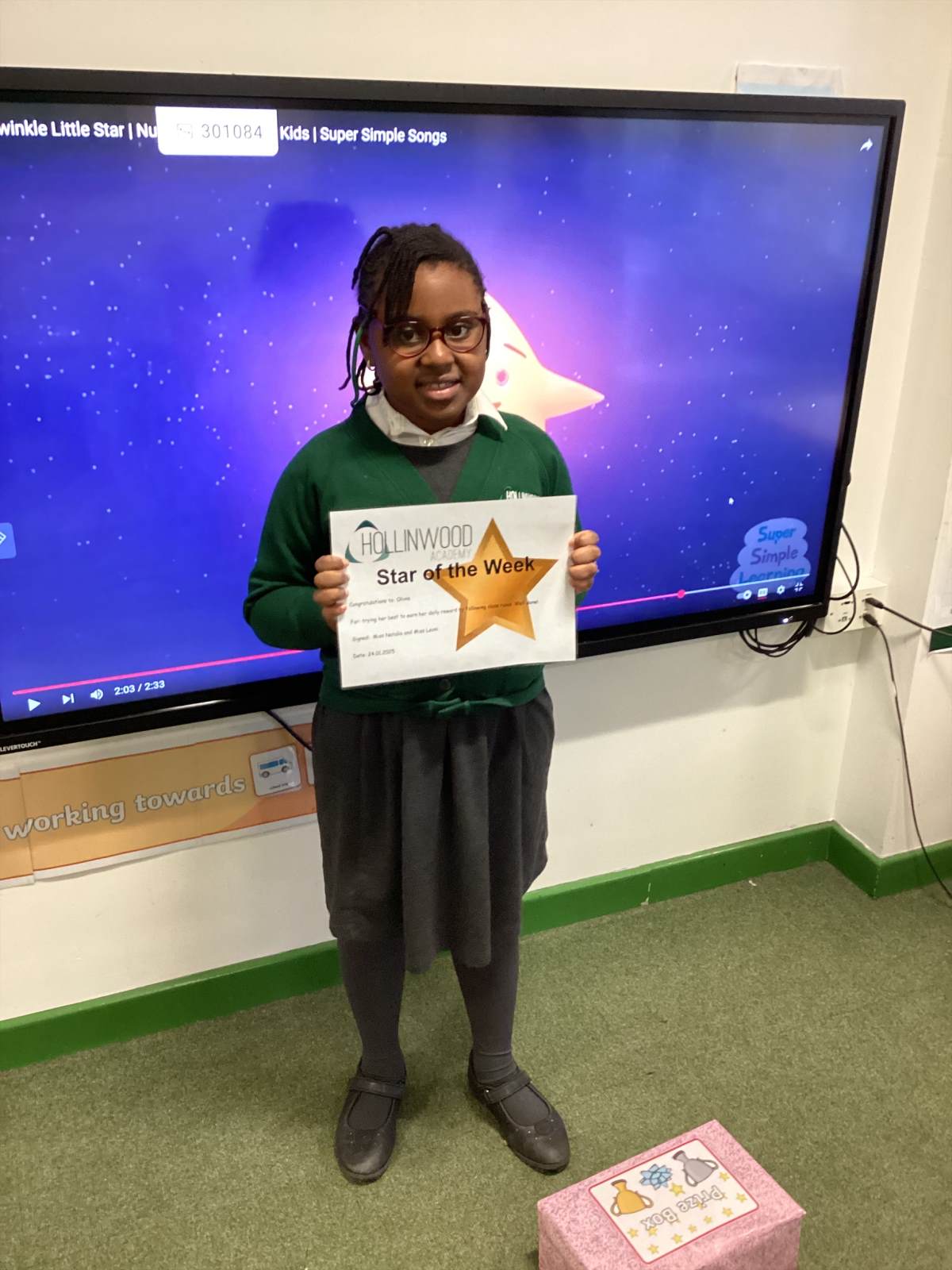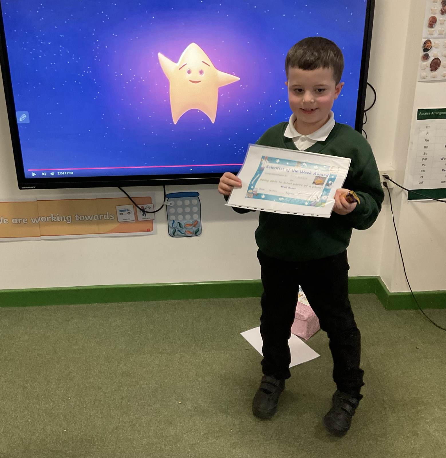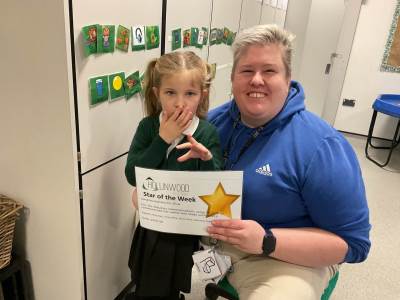Miss Pietraszewska’s STAR of the week is Olivia for trying her best to earn her daily reward by following class rules. Well, done.