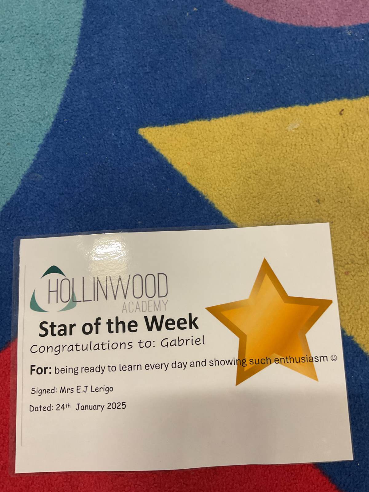 Mrs Lerigo’s STAR of the week is Gabriel for being ready to learn every day and showing such enthusiasm.