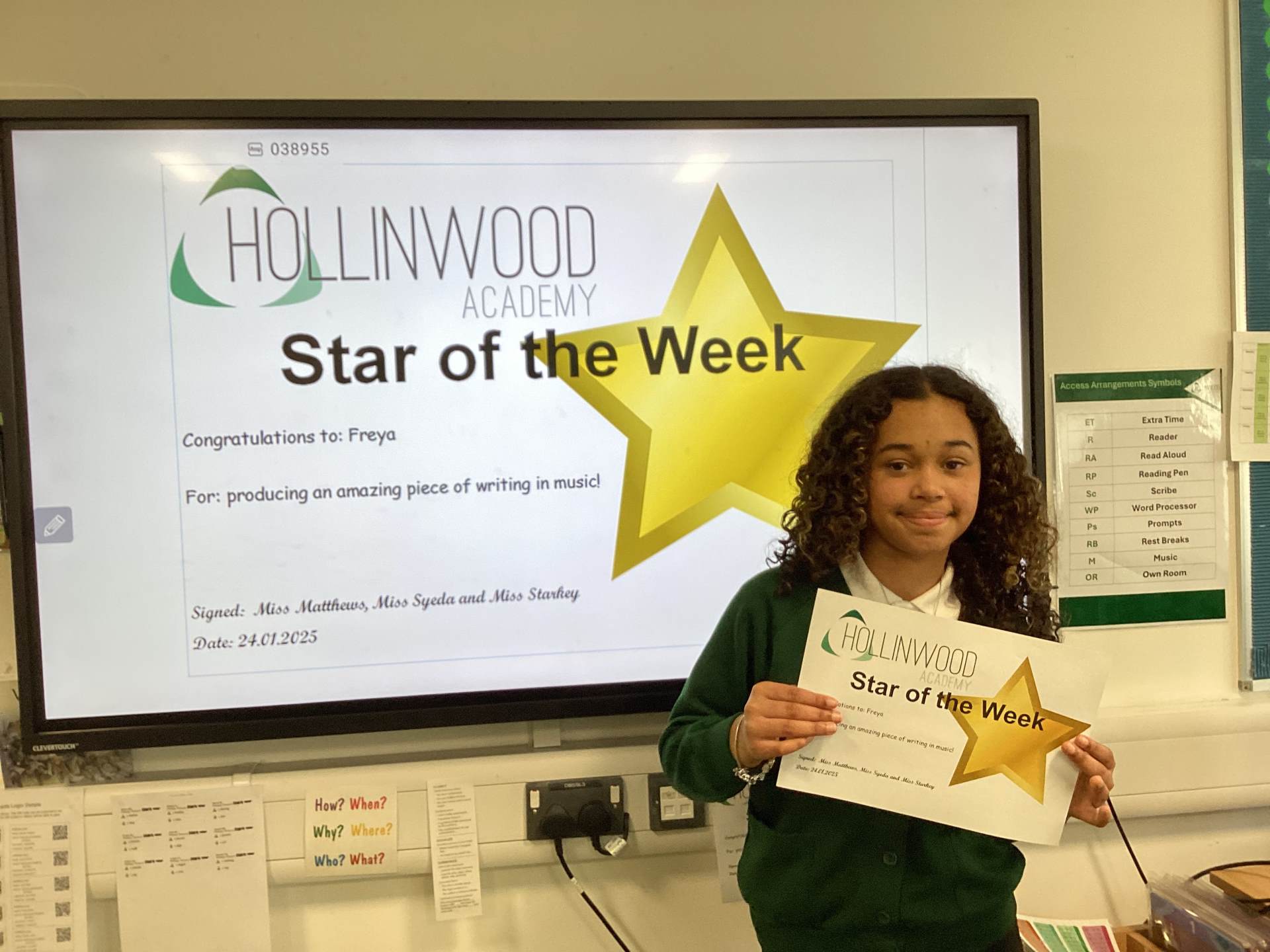 Miss Matthew’s STAR of the week is Freya for producing an amazing piece of writing in Music!