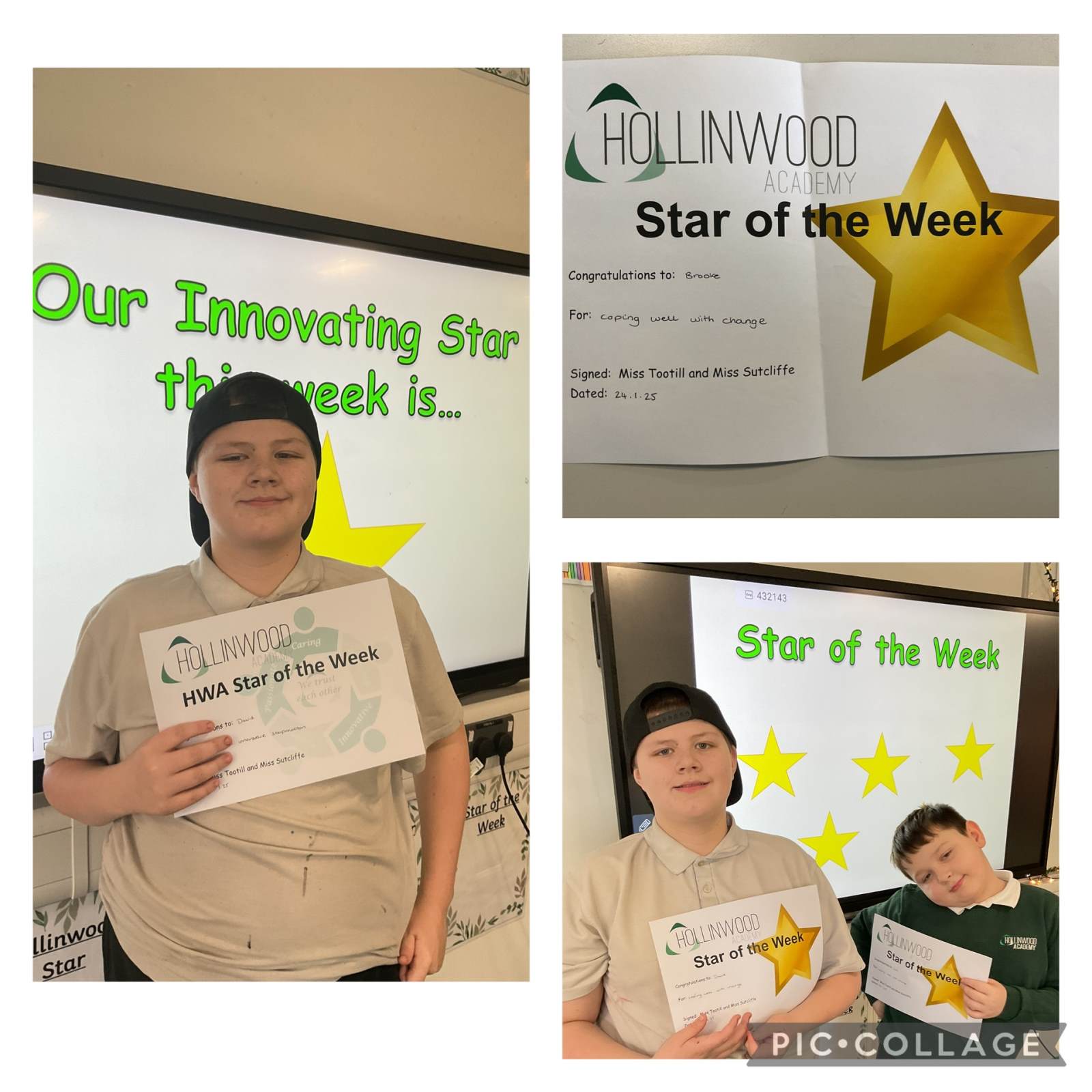 Miss Tootill’s HWA We are Innovative STAR is David, Cole, Brooke and Derry for coping with change.