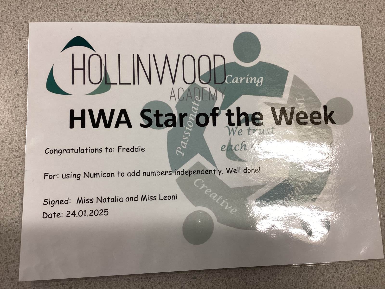 Miss Pietraszewska’s HWA We are Innovative STAR is Freddie for using Numicon to add numbers independently. Well, done.