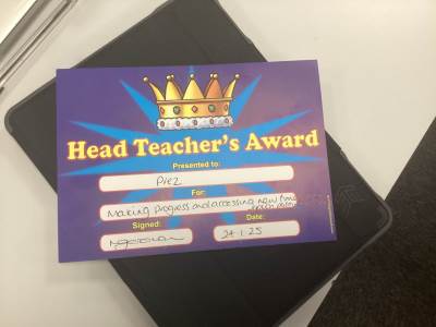 Miss Hulmes HWA star is Isaam for his excellent sewing skills and being extremely careful when using a needle in our D&T lessons.