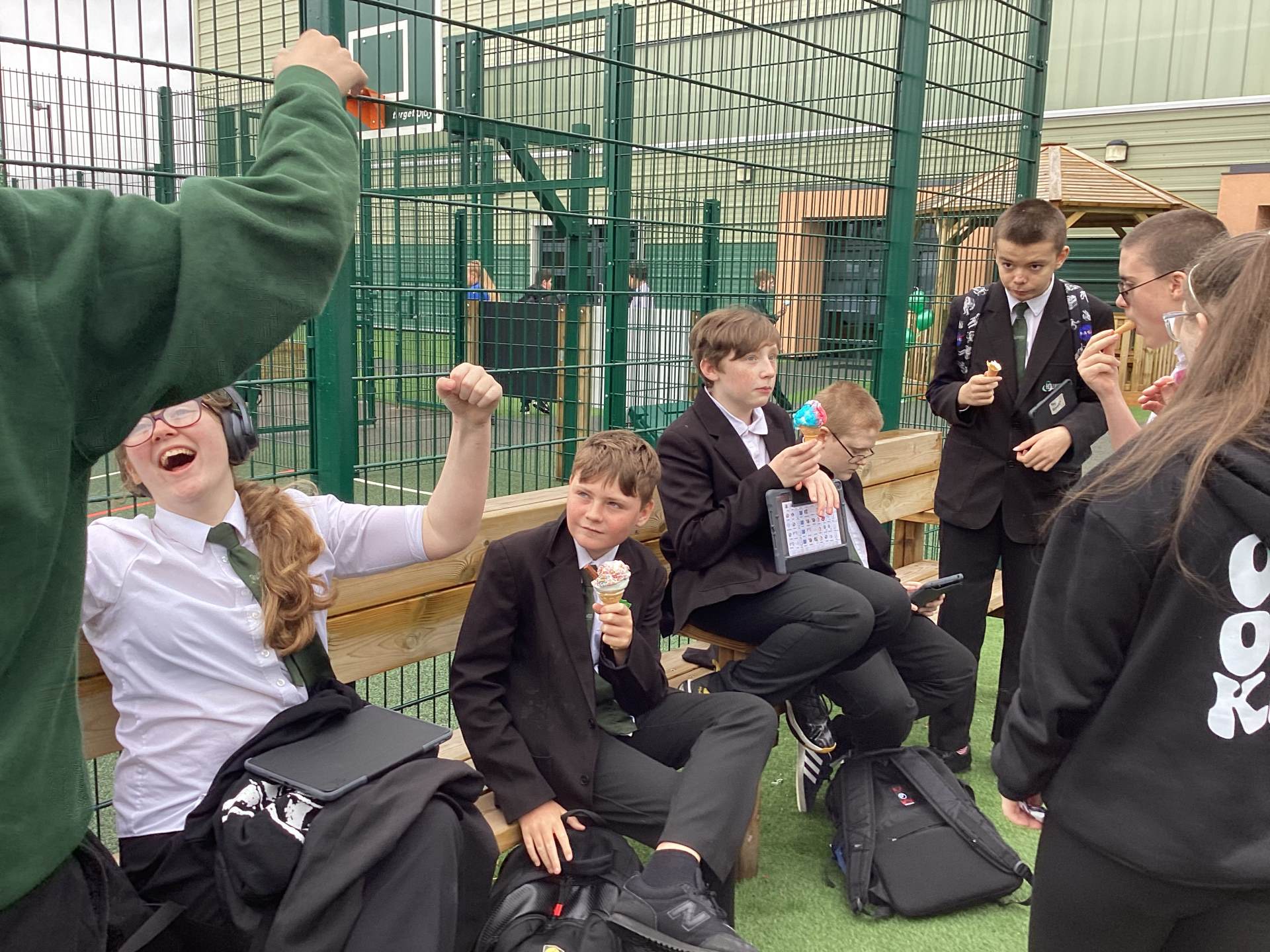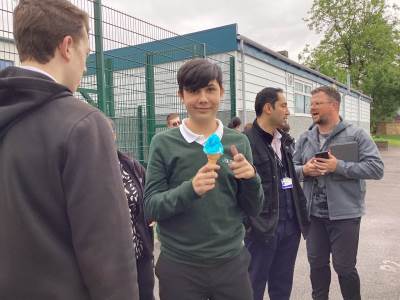 The celebratory ice cream van was a big success with all the children, young people and staff for their outstanding contributions to our recent Ofsted report. Everyone thoroughly enjoyed themselves and it was a great way to celebrate our outstanding report and end of term. However, we were upset that the sunshine did not make an appearance this morning, but we still enjoyed these outside together.
