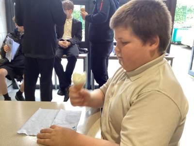 “This week in Science we have been doing our mocks (Biology, Chemistry and Physics). This shows us our progress and things that we need to work on. We also did a lesson today about energy transfer in which we made catapults and tested their effectiveness (unfortunately Louis, Mathew and Miss Nasim beat my team in the competition).