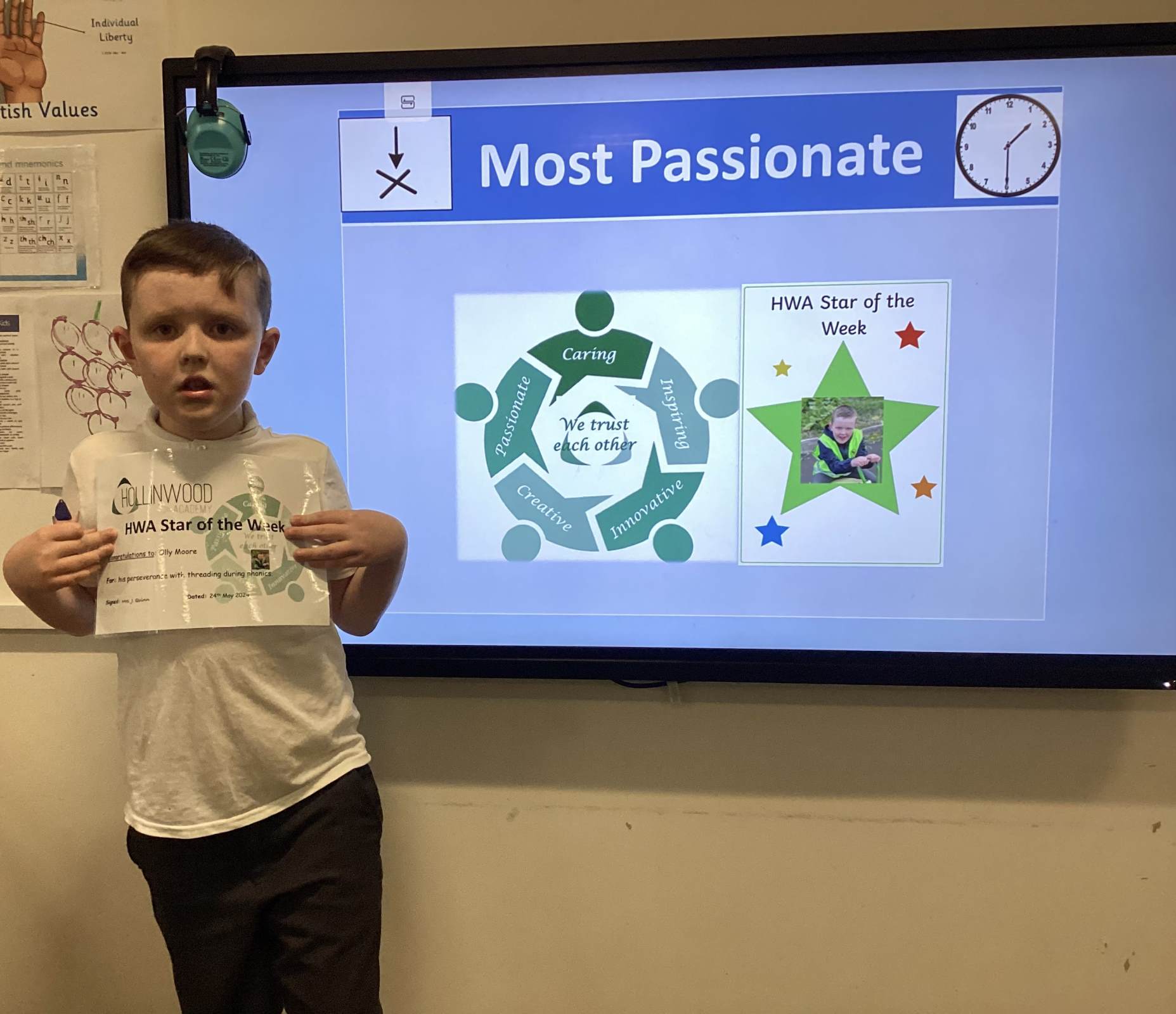 Mrs Quinn’s HWA Passionate STAR is Olly for his perseverance with a threading activity during phonics.