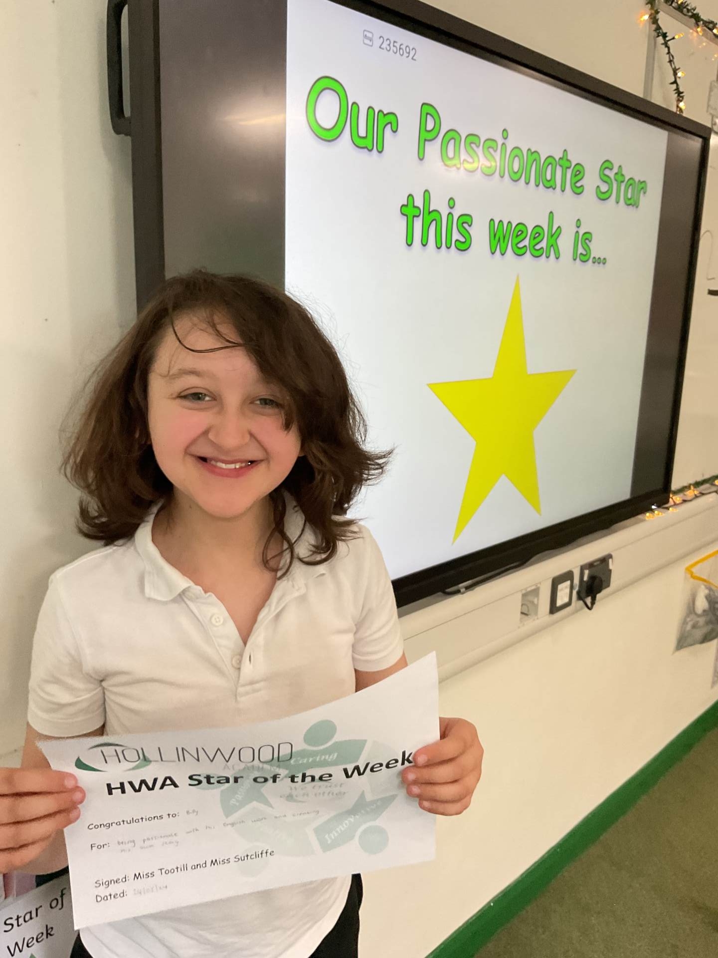 Miss Tootill’s HWA Passionate STAR is Billy for being passionate with his English work and creating his own story.