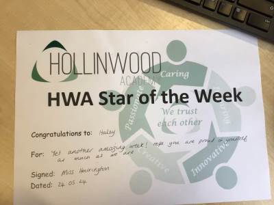 Thank you for an unbelievable year and for being part of our Hollinwood Academy Journey. We wish you all the best in your next adventure and journey into Secondary. Have a wonderful Summer, be safe and thank you for being OUTSTANDING!"