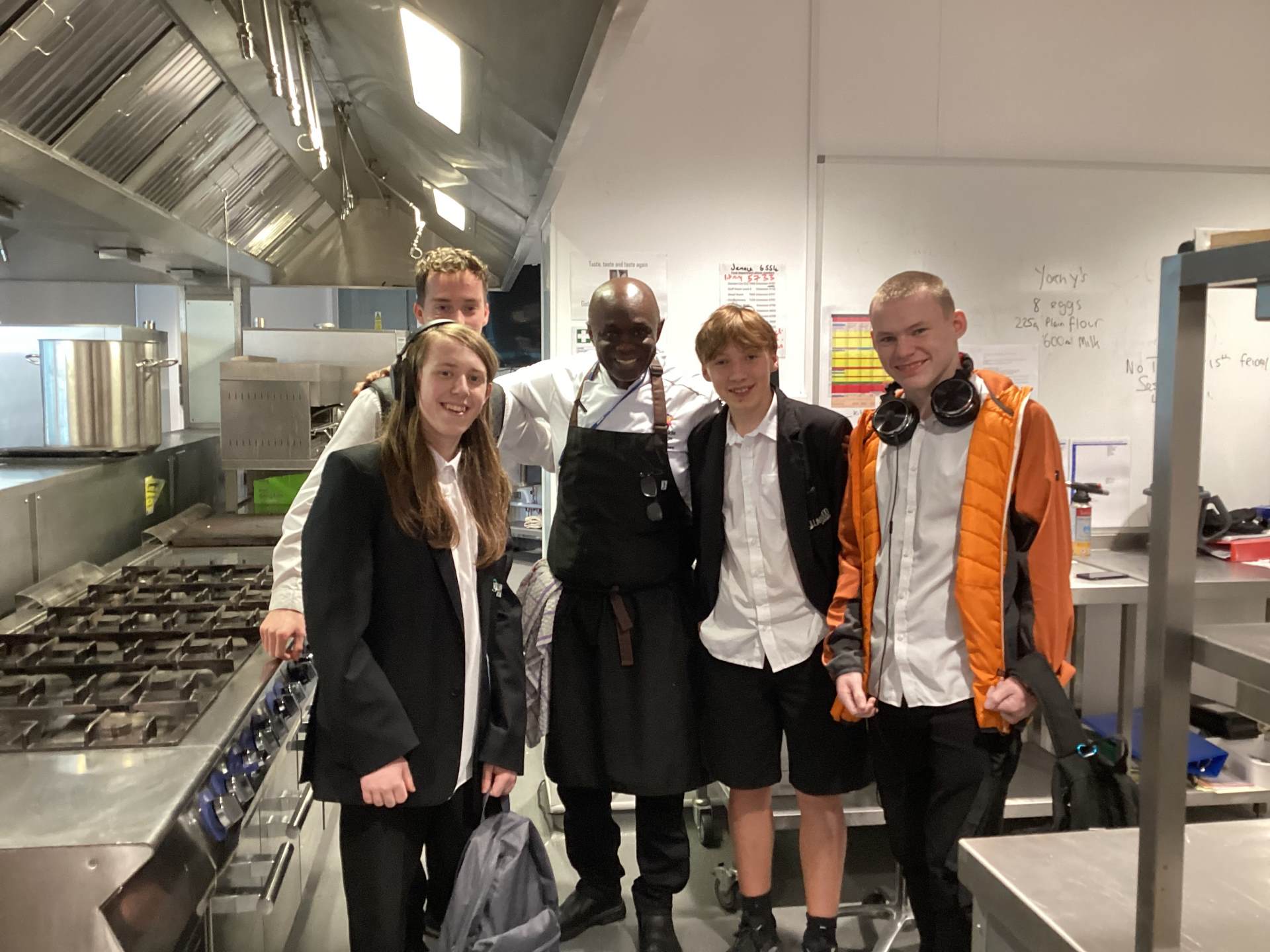 After our meal we were invited to go into the kitchen and see an industrial, catering kitchen and we had an amazing opportunity to meet the chef. Our students were very impressed and the chef Ray invited our students to come back and cook in his kitchen which we are in the process of arranging now!
