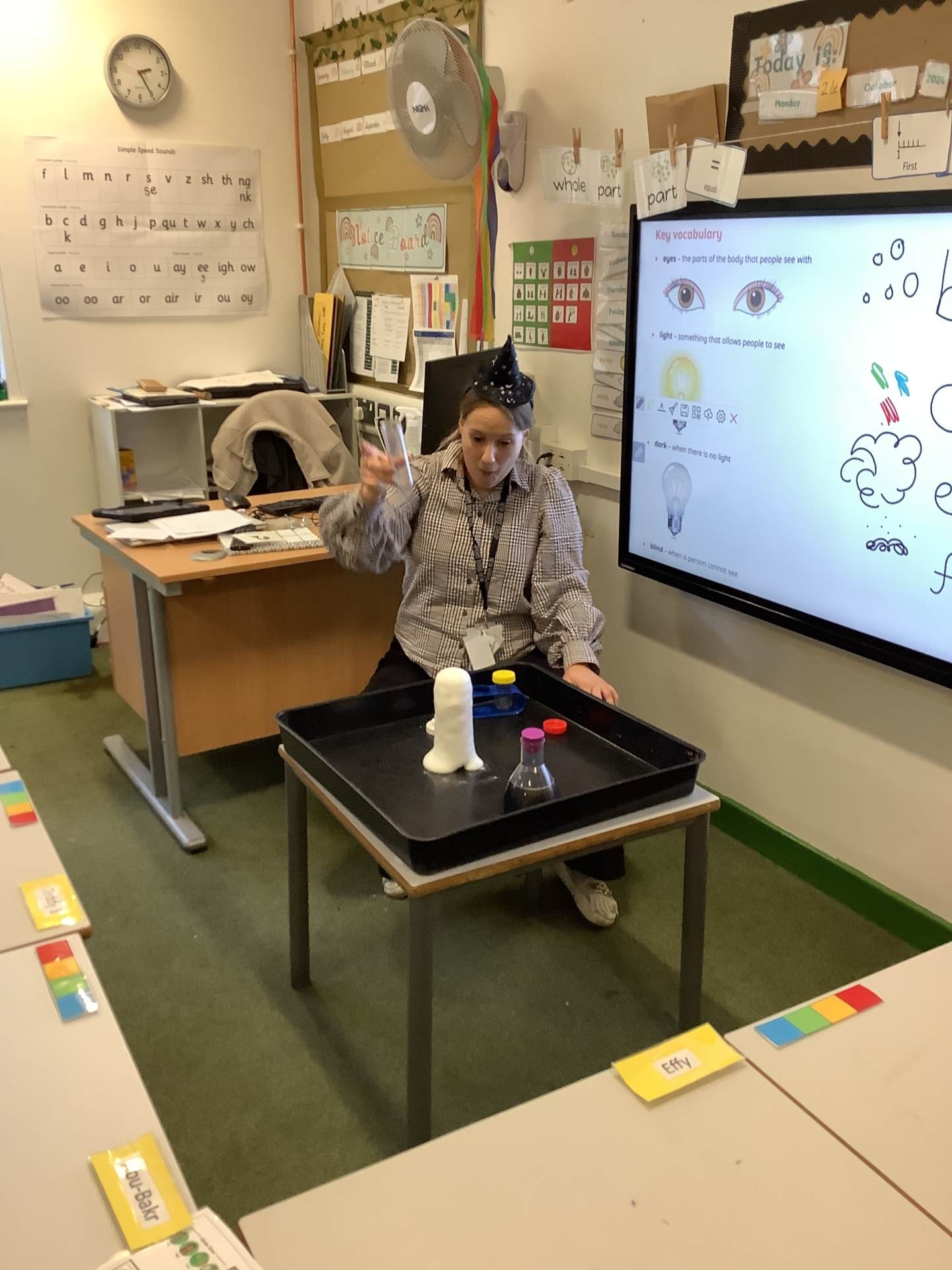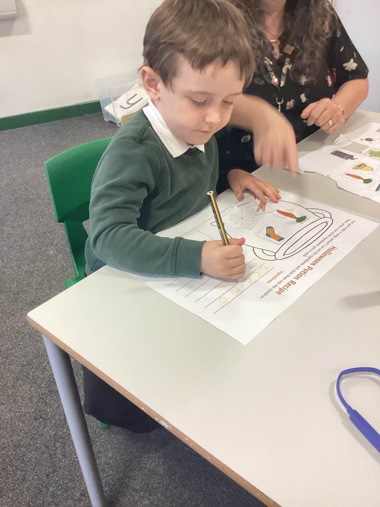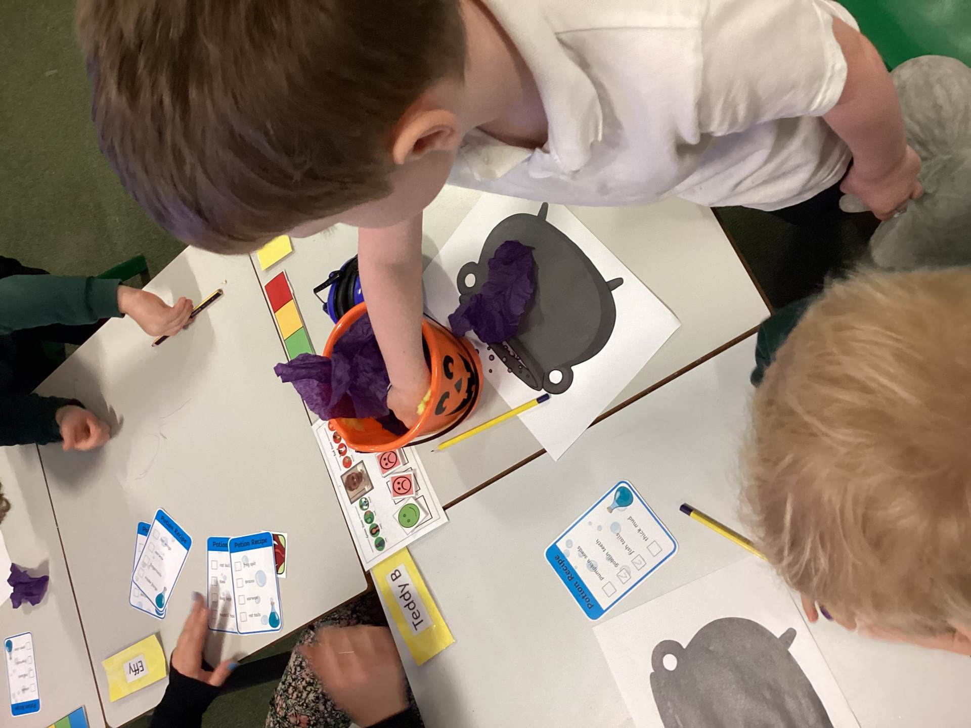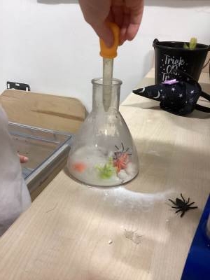 We have been enjoying all things Halloween this week, using our sense of sight to explore some witchy potions in science, using our rhyming skills to make up spells in phonics and we have been making bubbling cauldrons in art.