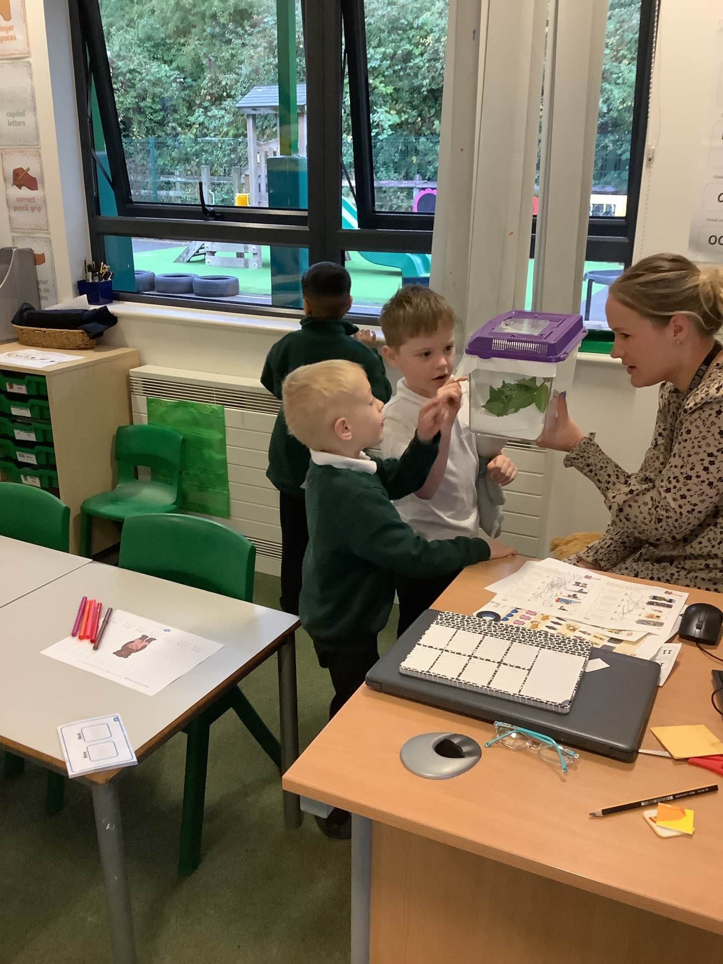"The last week of school this half term, and wow what a week it has been! Two of our class caterpillars have shed their skins and are looking very hairy now. We have loved watching them and collecting some fresh leaves on our outdoor education sessions.