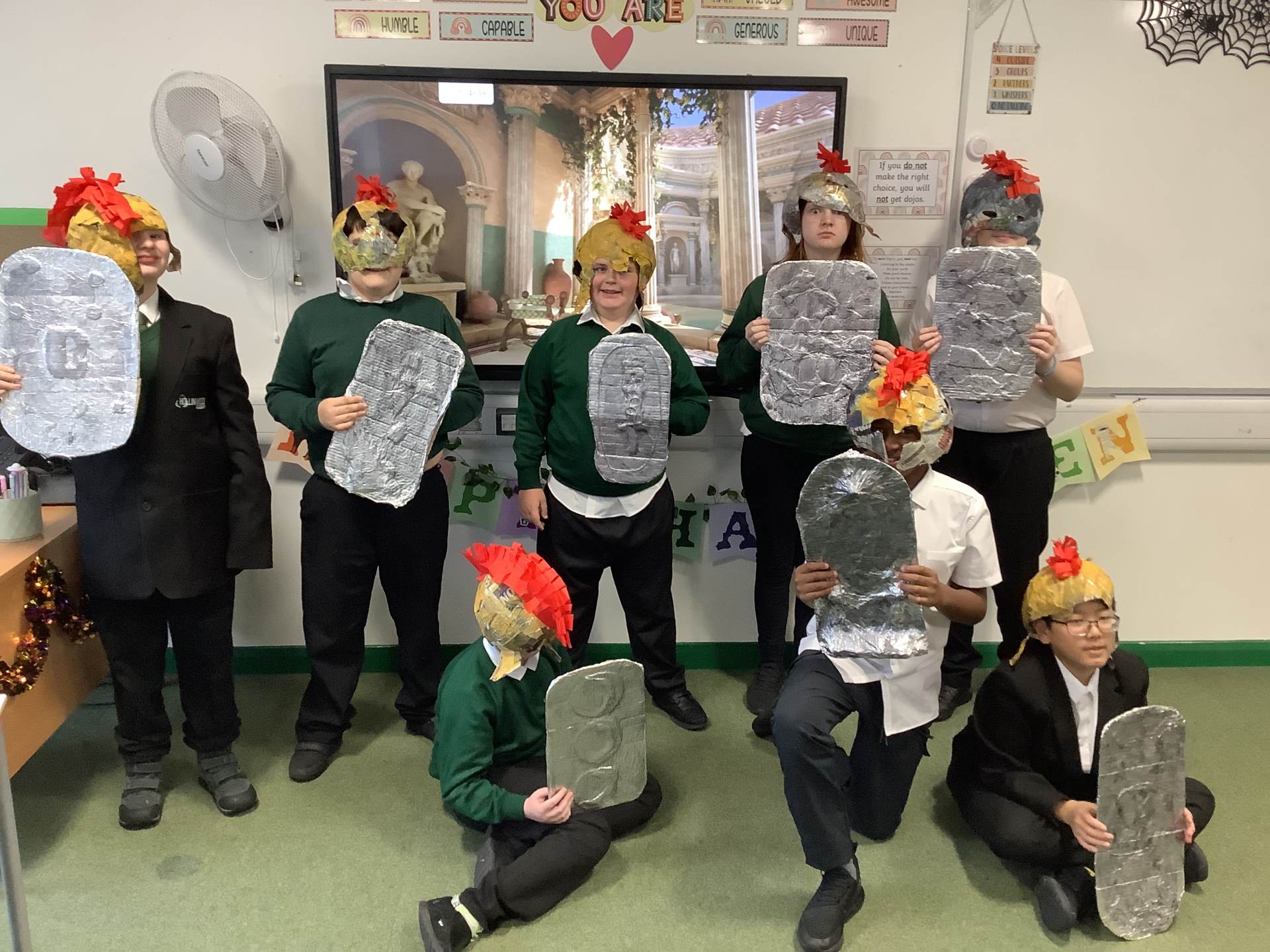In history this term the children have designed and made Roman helmets and shields – this really inspired their learning, and they thoroughly enjoyed it.