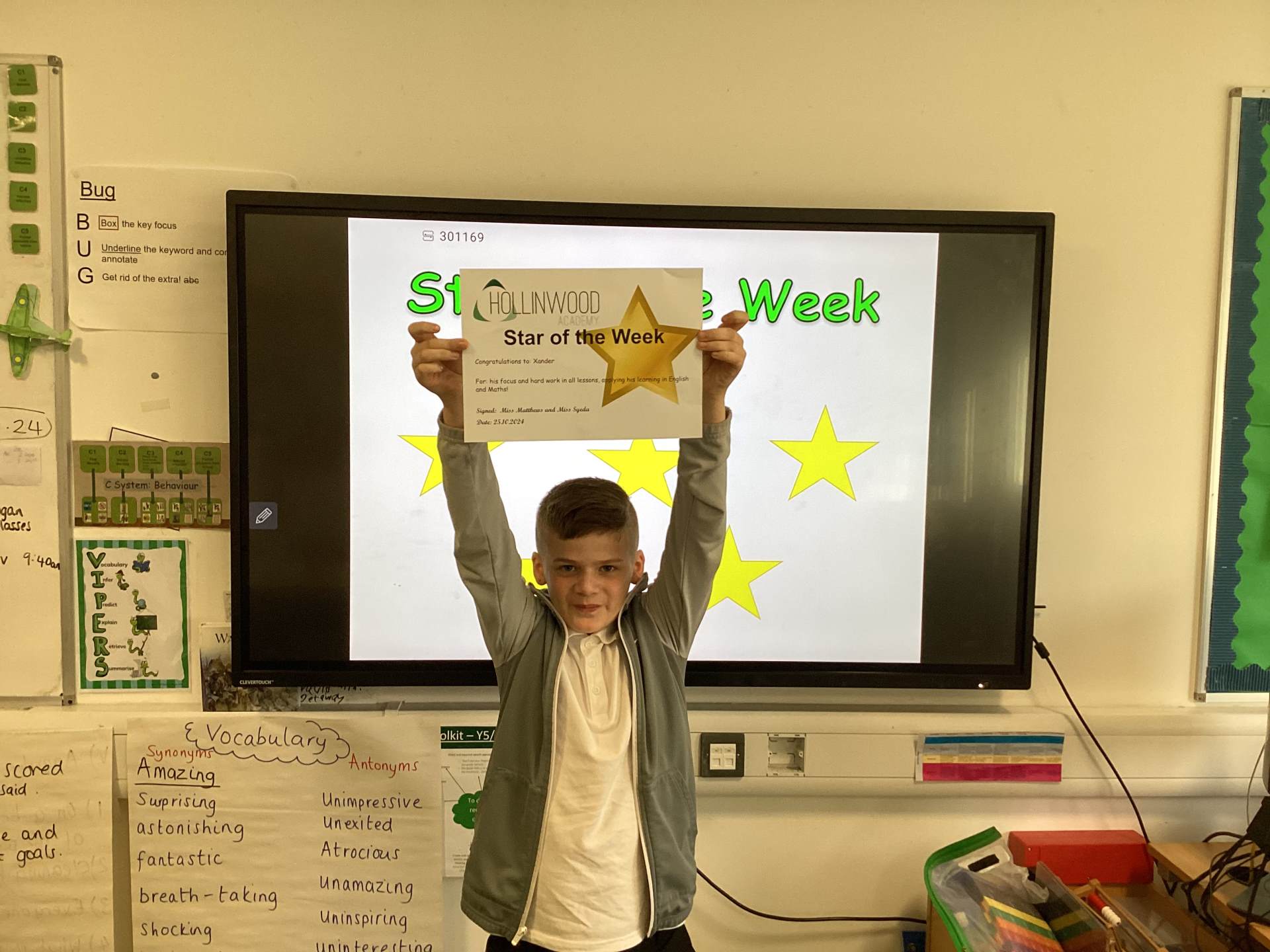 Miss Matthew’s STAR of the week is Xander for his focus and hard work in all lessons, applying his learning in English and Maths.
