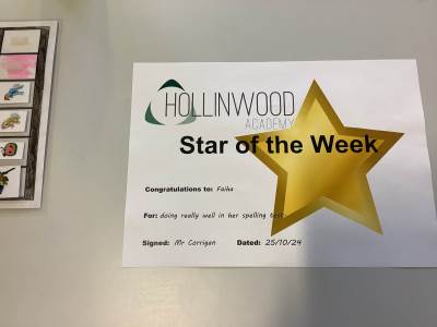 Miss Gittins’ STAR of the week is Freya is our Hollinwood star for being kind to her friends during soft play.