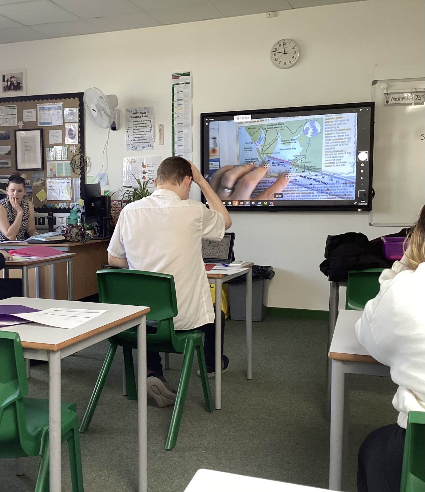 In Geography students have been looking at questions on maps, in preparation for their GCSE’s. Mrs Bottery, geography teacher, used her visualiser equipment to show the maps on the board and talk the students through the steps they need to take to work out the answers. Using this equipment has enabled the students to have a visual guide and a clearer understanding, so they now feel more confident with this. "