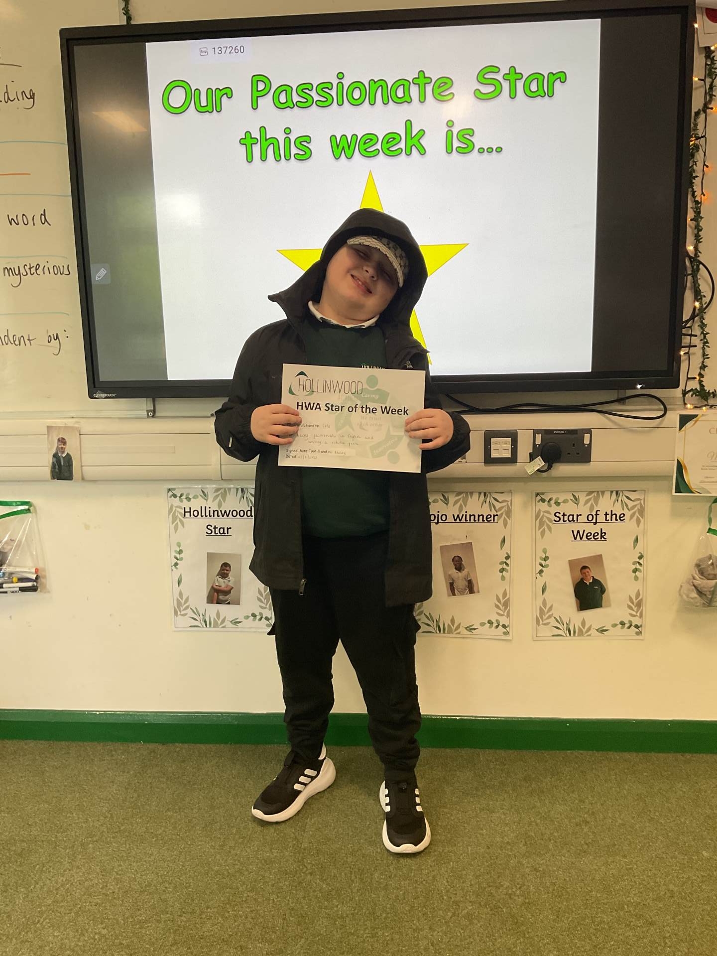 Miss Gittins’ HWA We are Passionate STAR is Lewis for fantastic contributions in phonics this week.