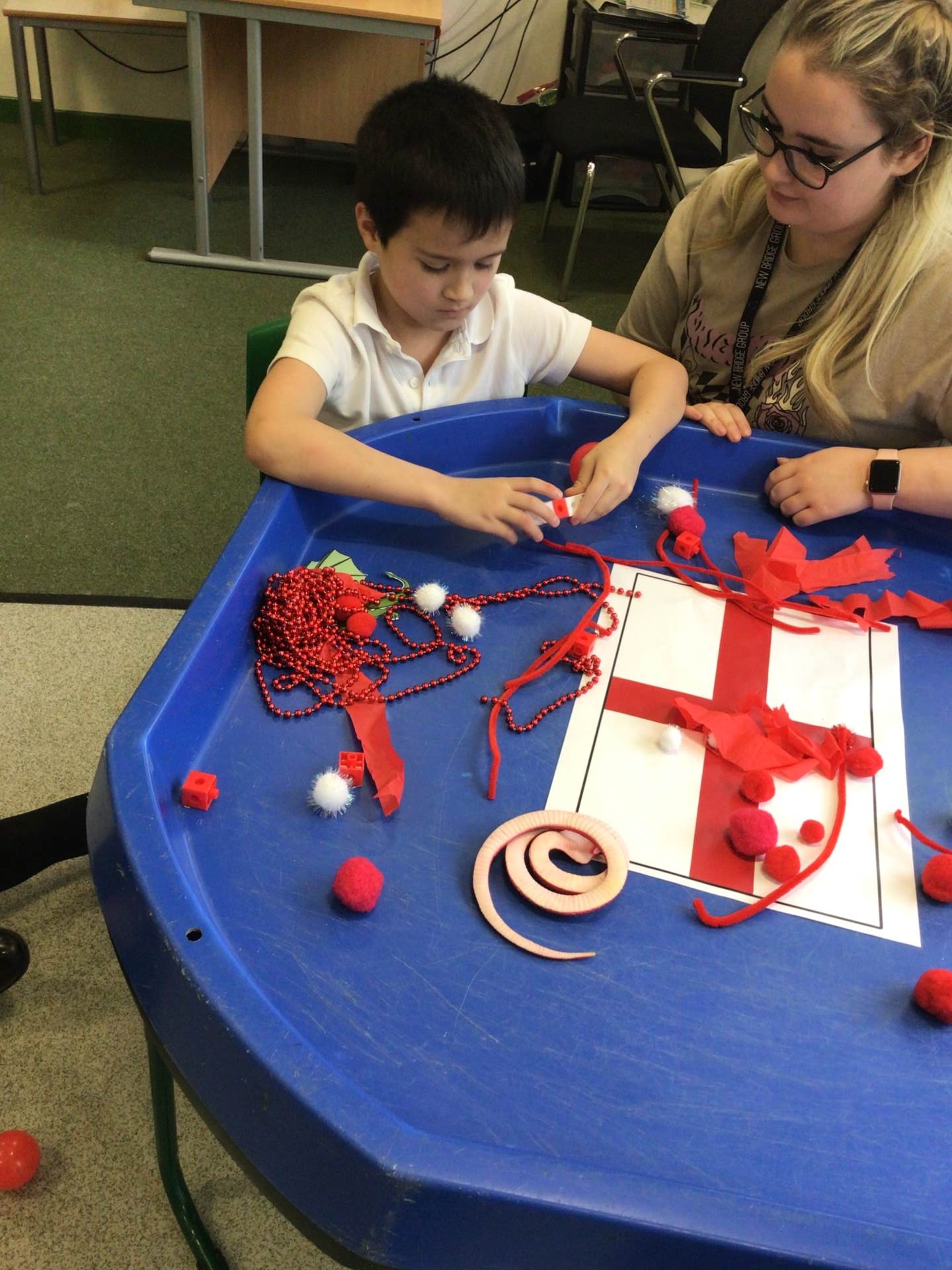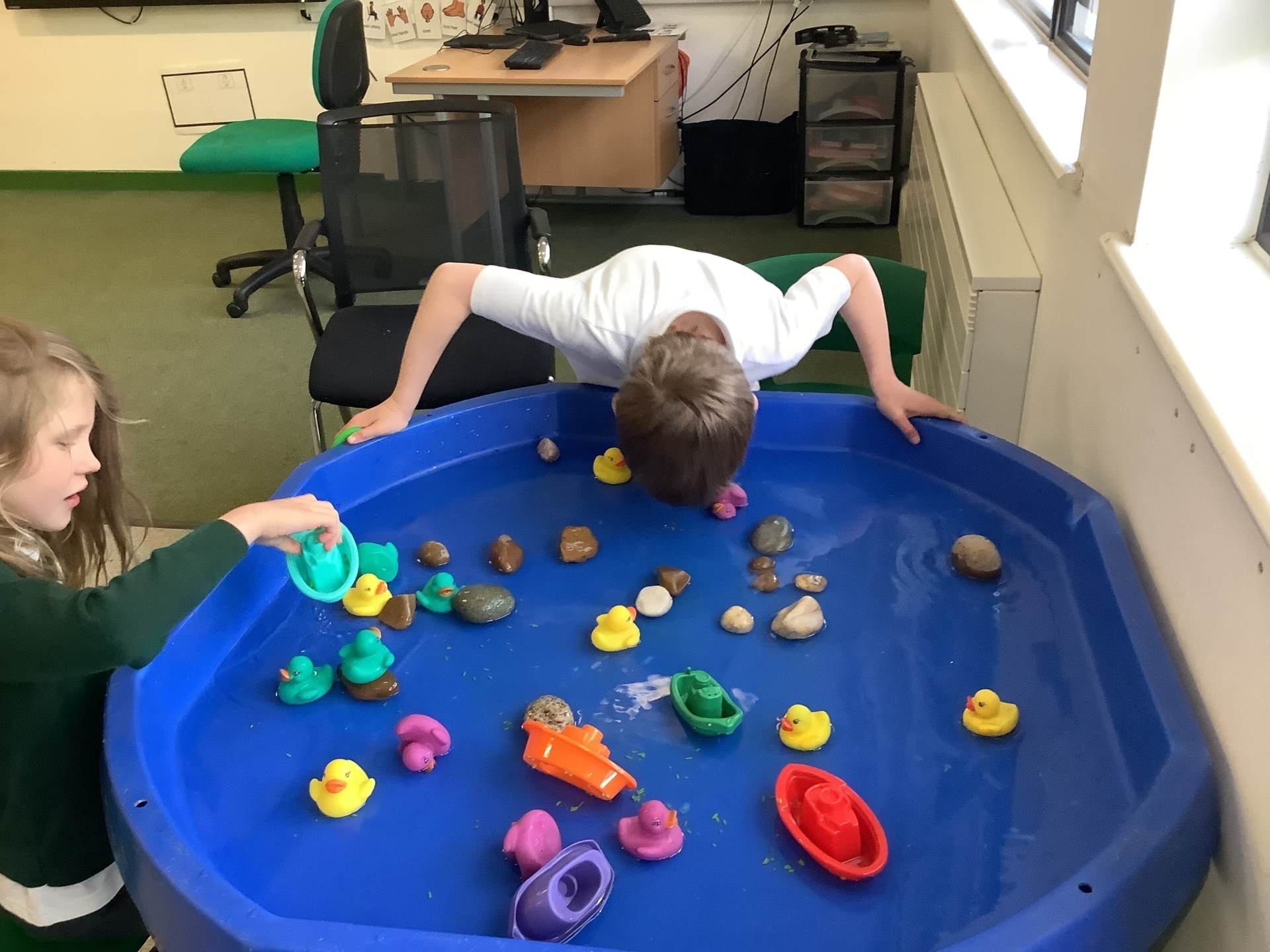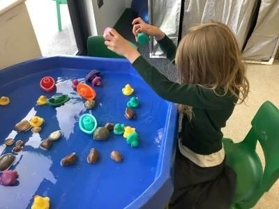 On Tuesday, we celebrated St George's Day. We engaged in sensory activities with red and white trays and expressed our creativity by painting our own St George's flags. We also had a fantastic time playing with water on Tuesday - it's always one of our favourite activities. We love filling and emptying containers and playing with our friends.