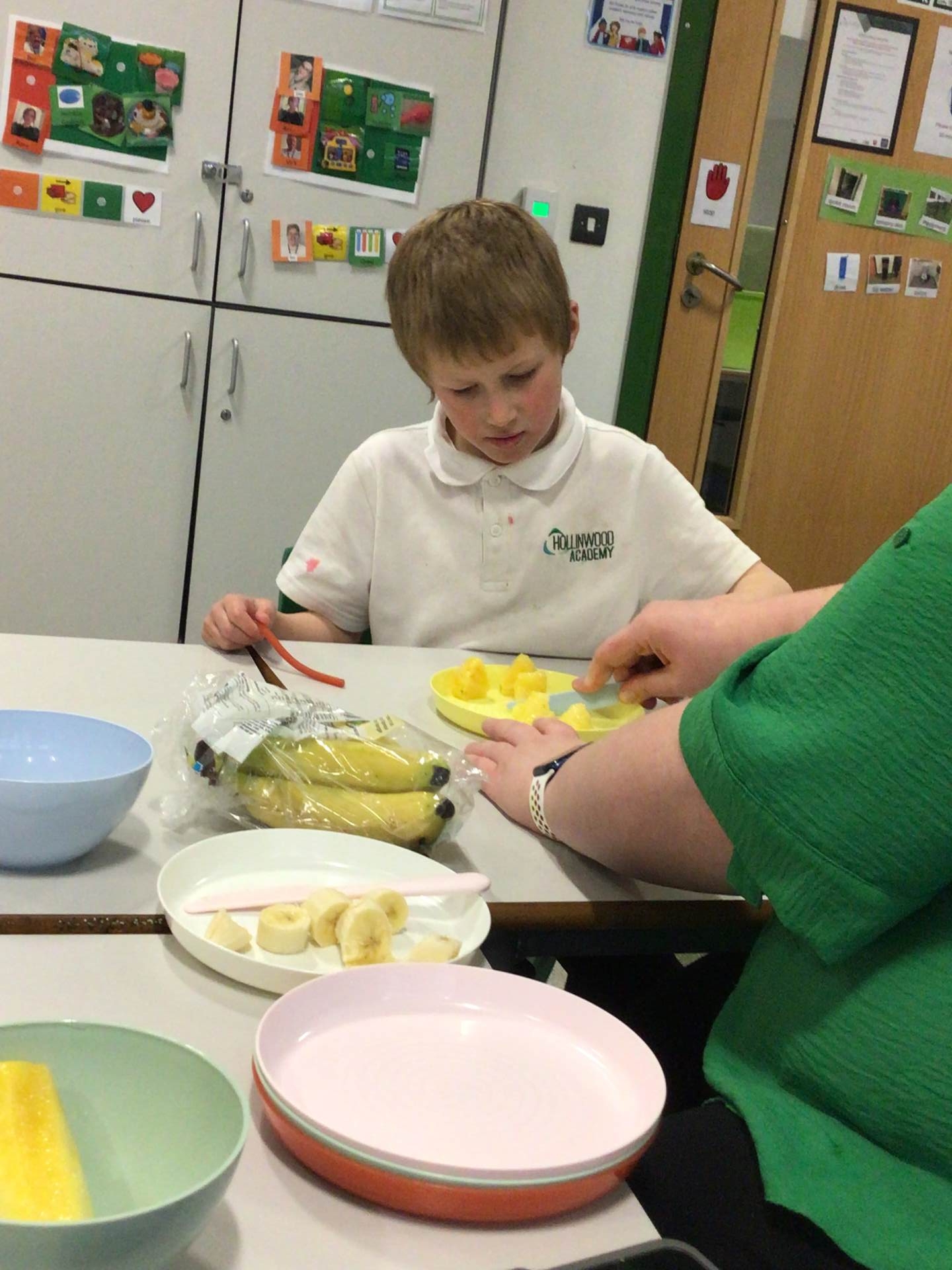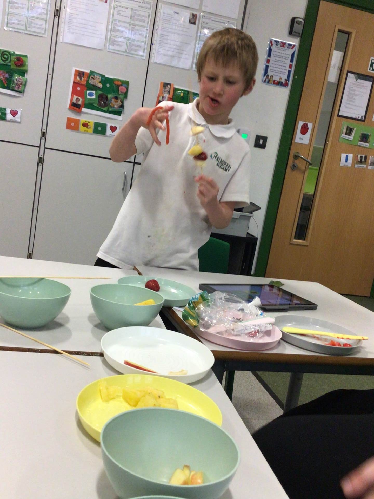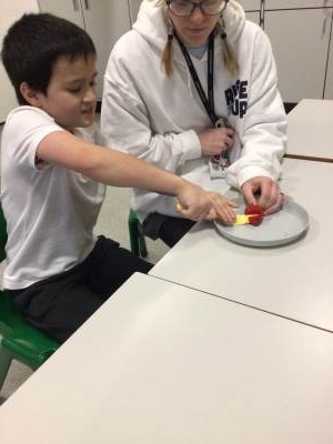 In our communication sessions, we've been working hard on making requests with the help of adults. We've been using symbols, communication mats, and TD Snap to express our wants and needs, and we're making great progress in this area. We've even been practicing these skills in other sessions too. For example, in our 'Fun with Food' session this week, we used TD Snap to request the various fruits we wanted to add to our fruit kebabs. It was great to taste and explore the different fruits and we showed remarkable independence.