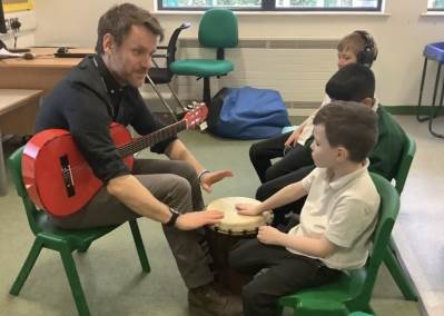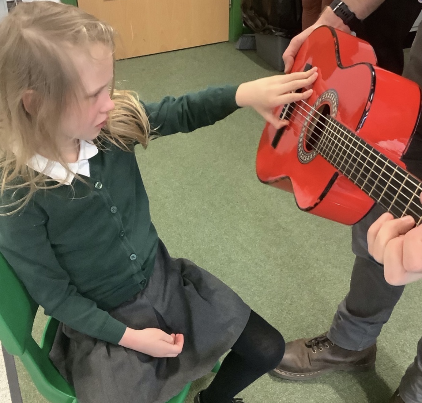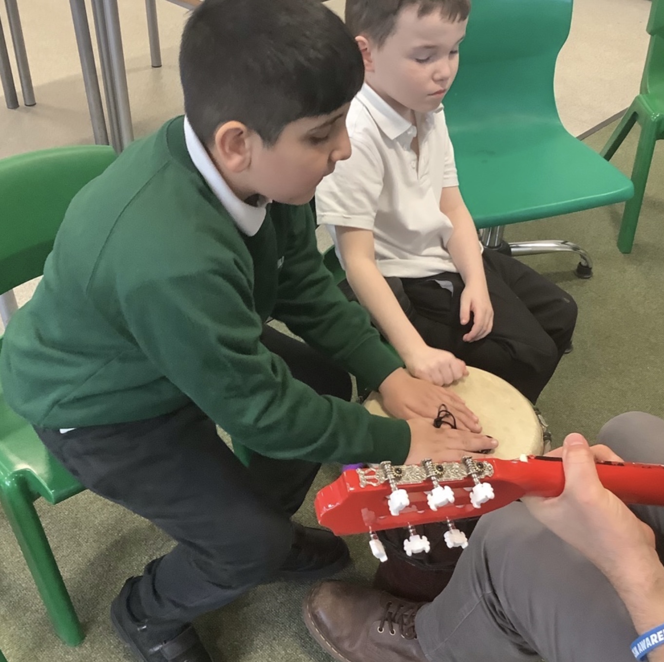 During outdoor education, we ventured to the park. We absolutely love going out and about, especially when we get to ride the bus. It's always a fun-filled adventure. Additionally, we look forward to our weekly music sessions with Mr. Scott. We get to sing along and play a variety of musical instruments.