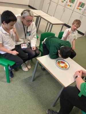 During Science this week, we have begun the new topic of ‘Molecules and Matter.’ The students have conducted an experiment measuring the destiny of irregular objects, using water displacement. Throughout the lesson, our trust value “passionate” was reflected by the students, as their determination and passion to achieve the desired outcome shone through.