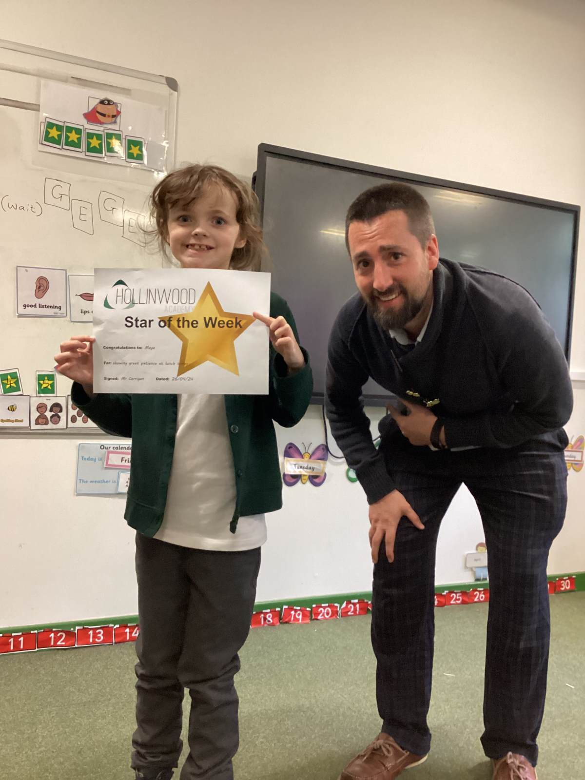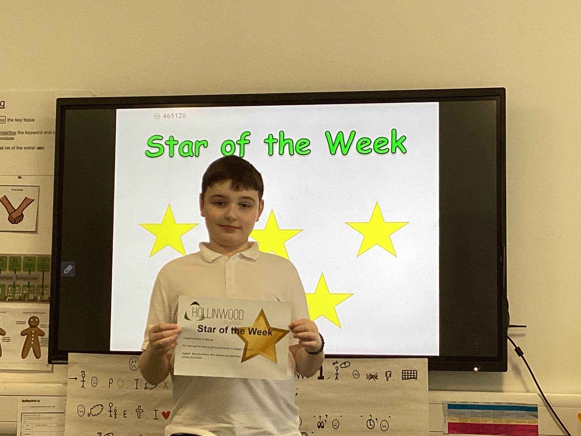 Miss Matthew’s STAR of the week is George putting his hand up and trying harder to engage in lessons this week.