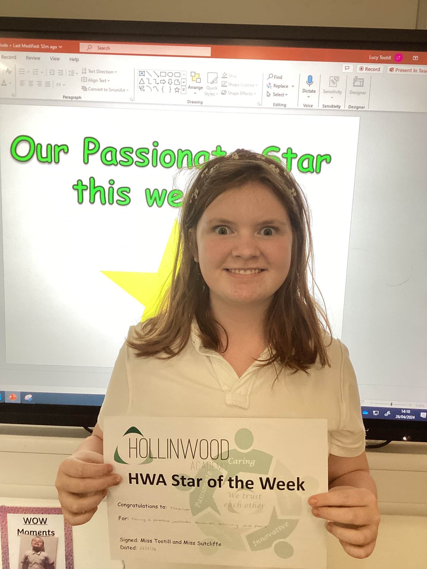 Miss Bramley’s HWA Passionate STAR is Eliora for being a passionate member of the class in every activity she does.