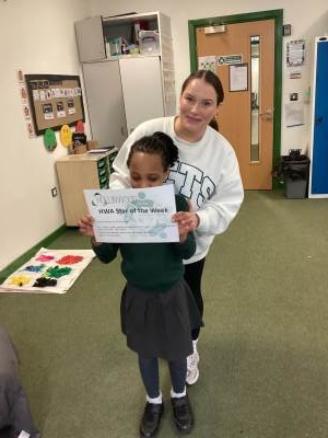 Miss Oakley’s HWA Passionate STAR is Euan for aways being passionate in all areas of his school day, from tuff tray work to dancing at the songs for carpet time. Well done!