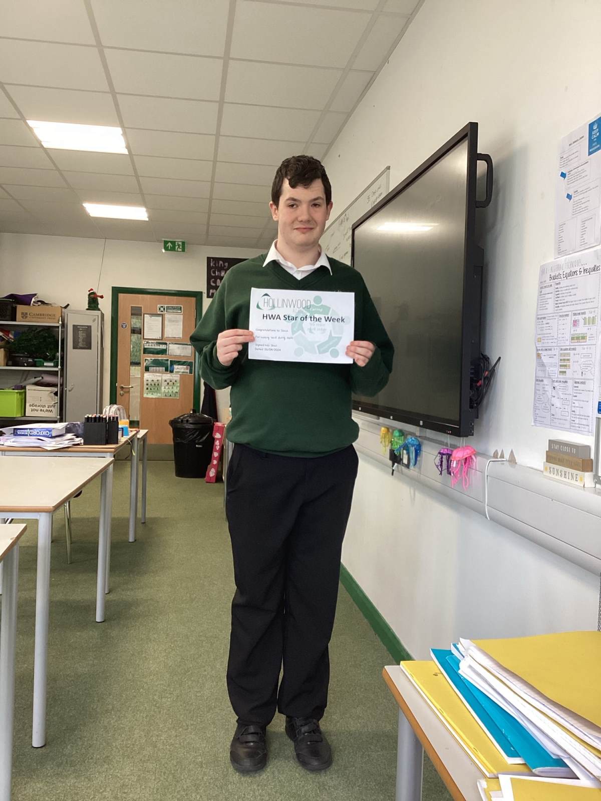 Miss Boothroyd and Miss McDonald’s STAR of the week is Jacob for a significant improvement to his attitude to learning and effort during English lessons.