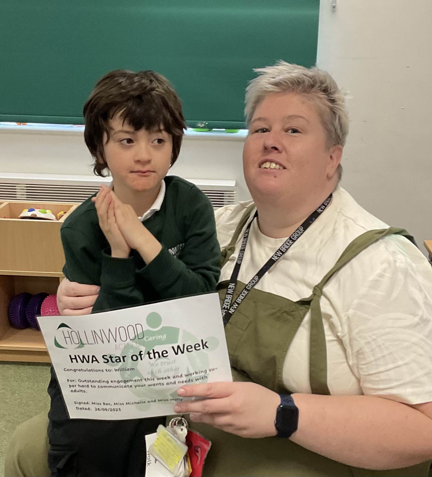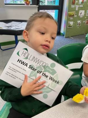 Mrs Bailey’s HWA We Are Caring goes to William for outstanding engagement this week and working super hard to communicate your wants and needs with adults.