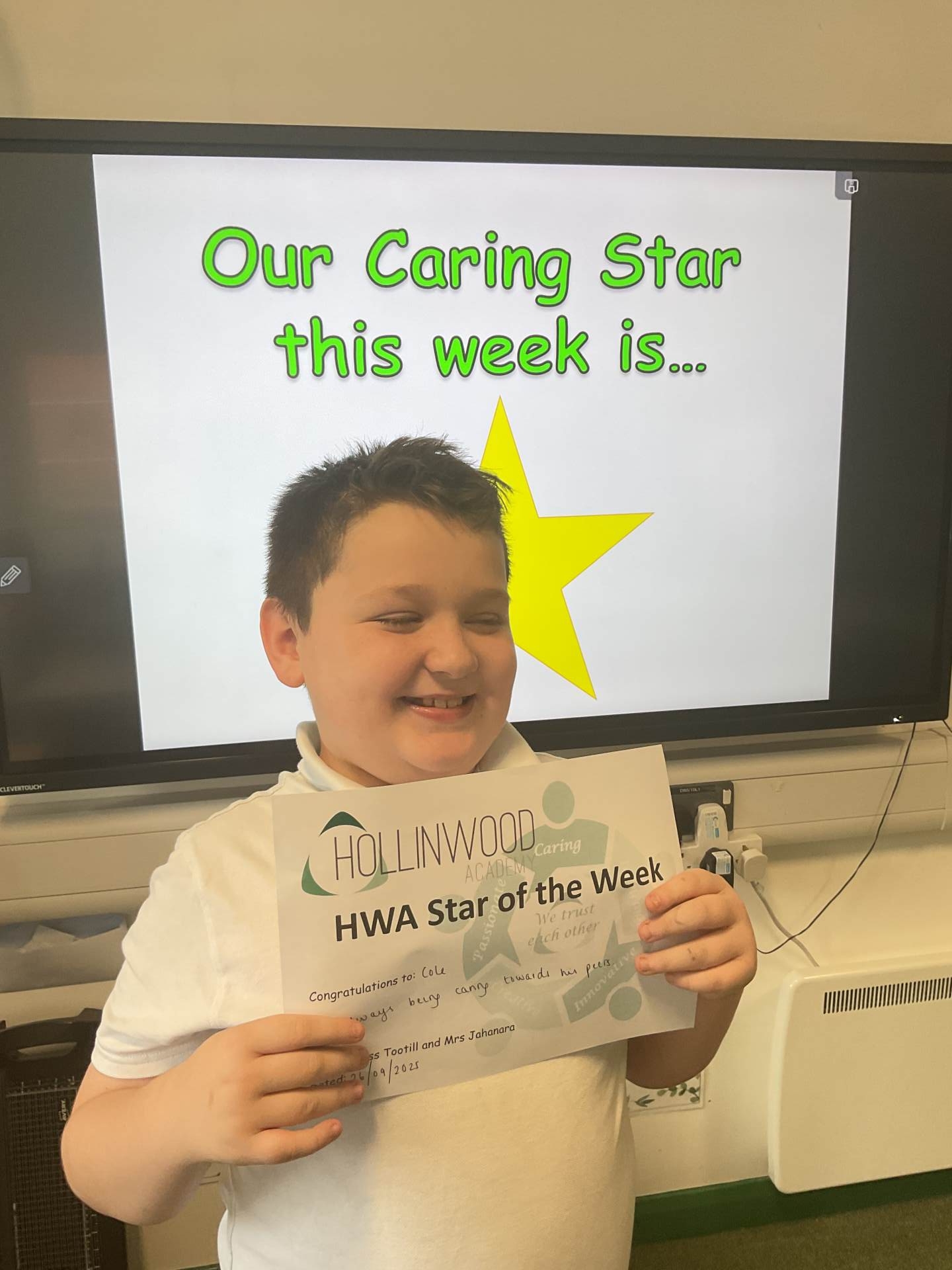 Miss Tootill’s STAR of the Week goes to Cole for always being caring towards peers.