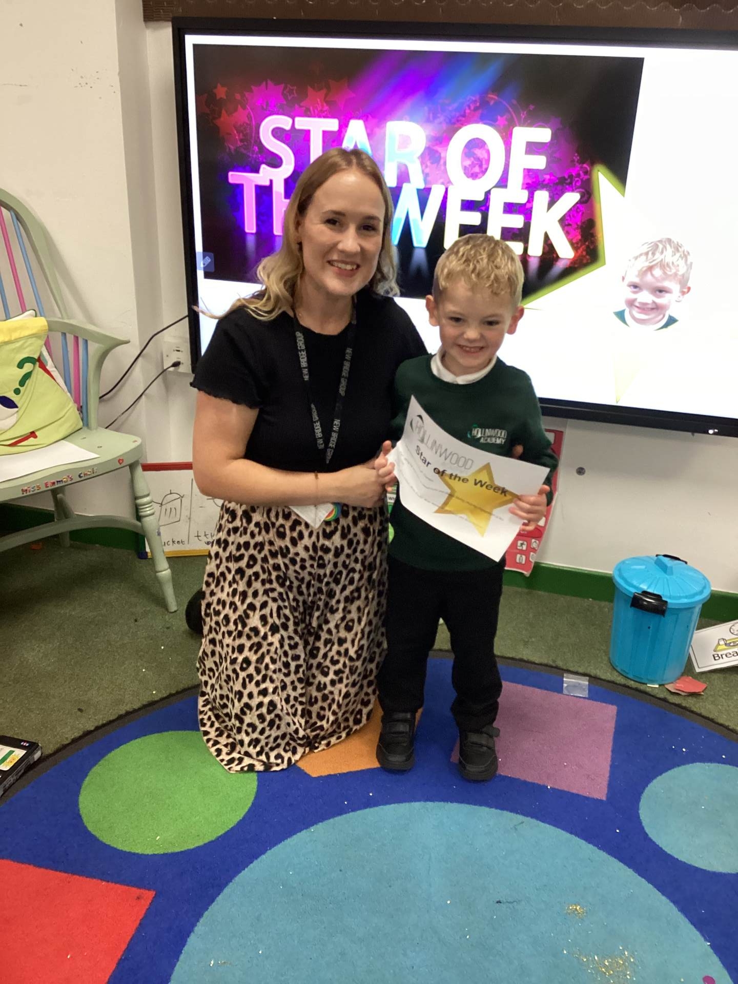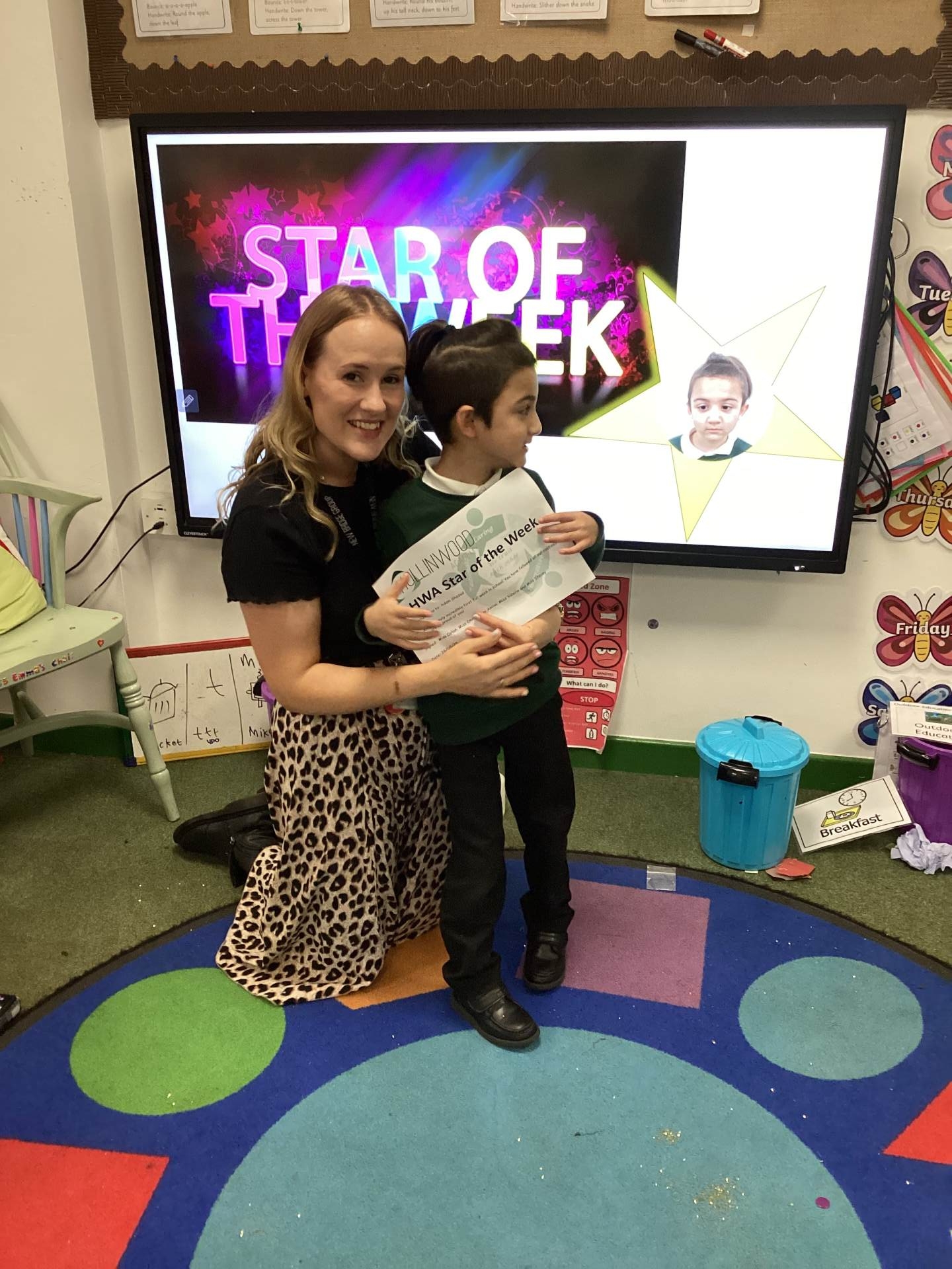 Mrs Quinn’s STAR of the Week is Freddie for responding to familiar adults offering a comforting hug to help him feel safe and calm.