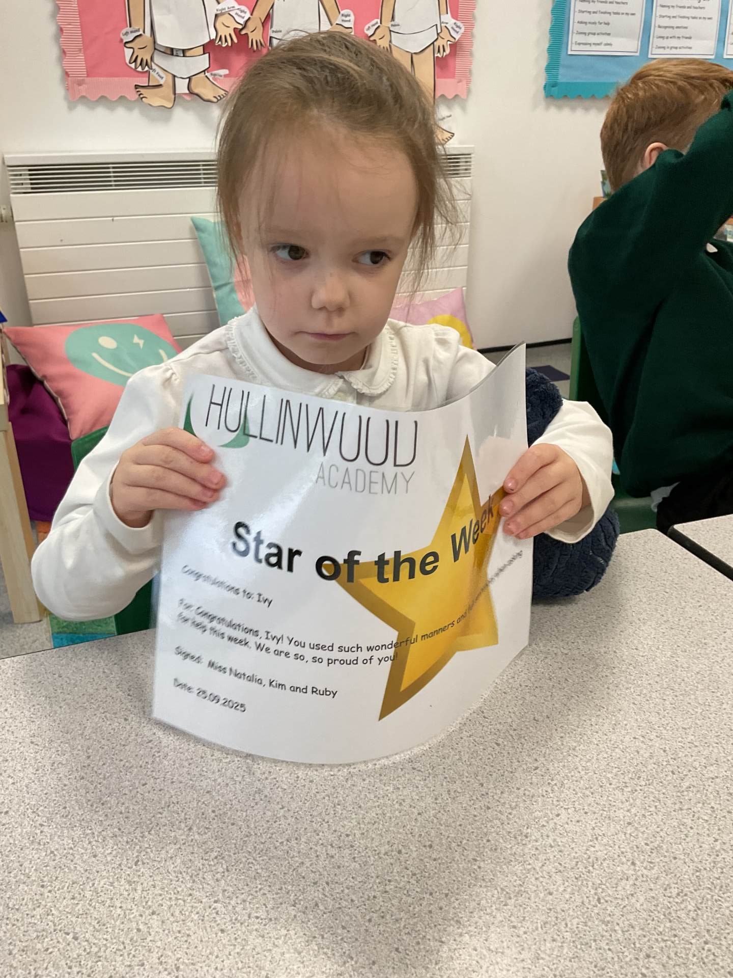 Mrs Bailey’s STAR of the Week is Ohud for amazing work in communication lessons this week, and fabulous participation in our ‘Good Morning’ song.