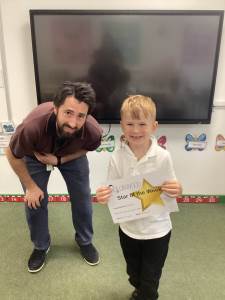 Miss Boothroyd’s STAR of the Week is Albie for always trying his best in his lessons.