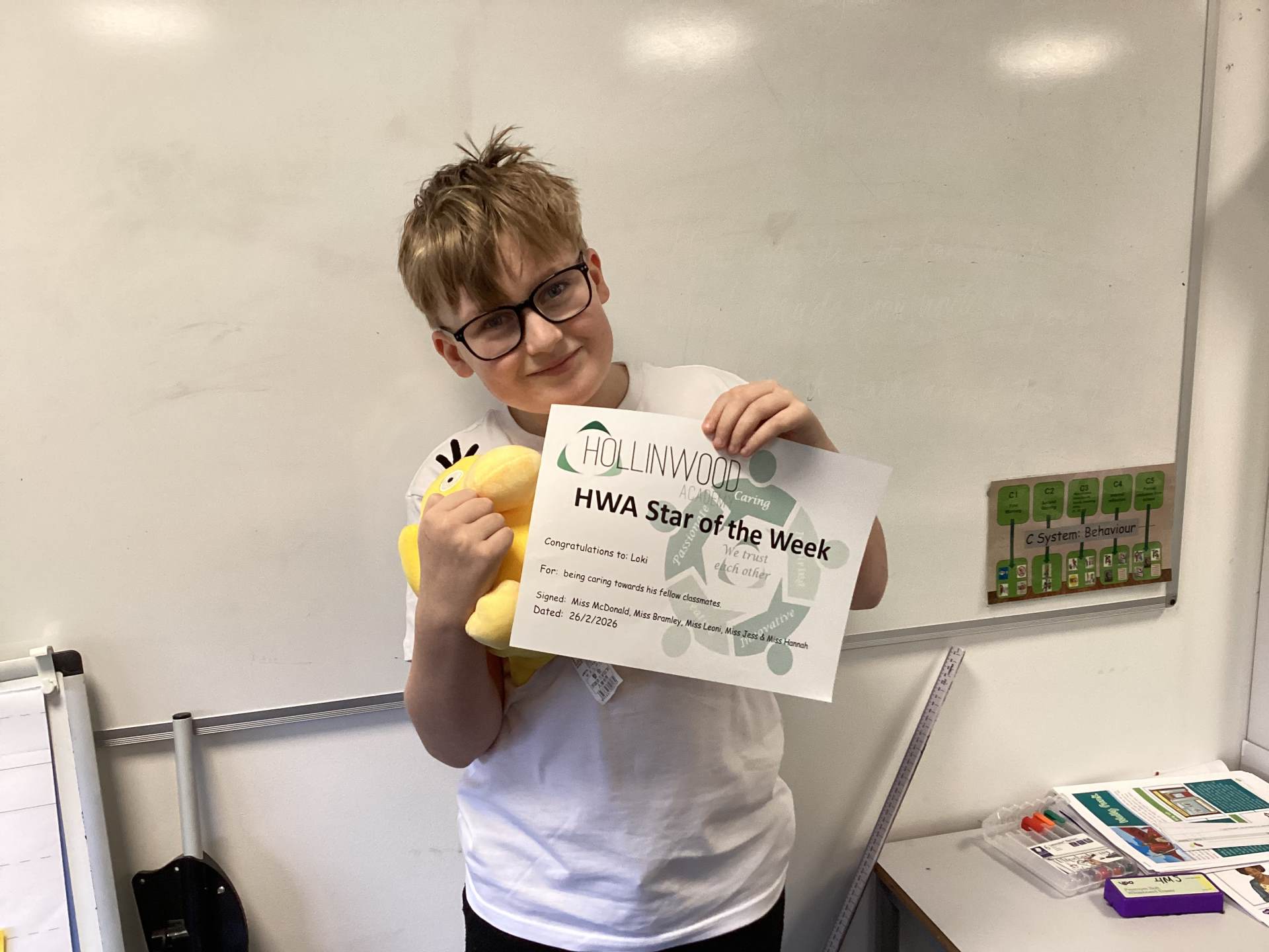 Mrs Matthews’ STAR of the Week is Loki for being caring towards his fellow classmates.